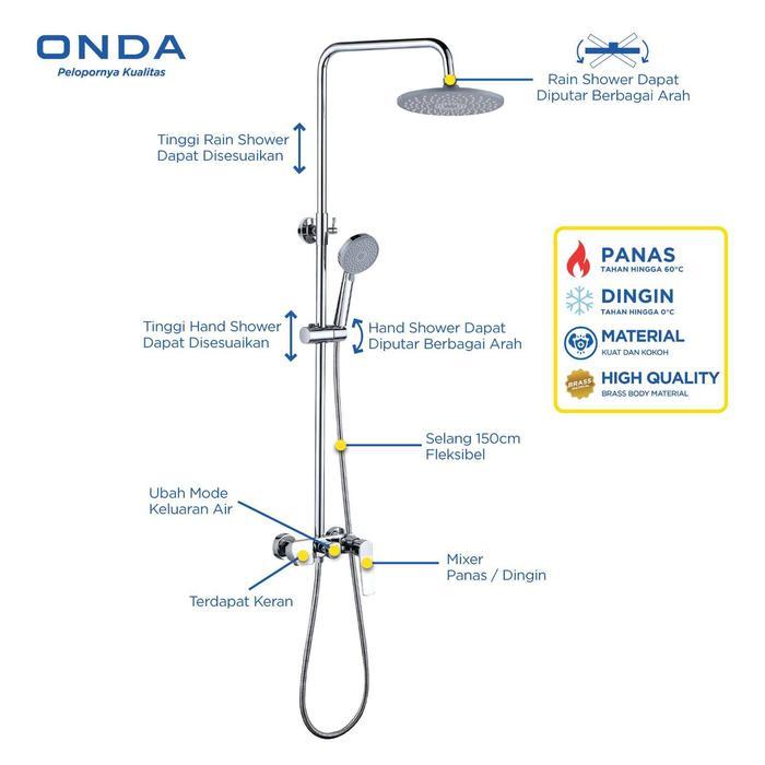 ONDA RAIN SHOWER TIANG KAMAR MANDI SET 3 IN 1 RENEW ANTI KARAT KOMPLIT DENGAN KRAN PANAS DINGIN COCOK MANDI ANTI BOCOR FULL SET SOWER - RS RENEW