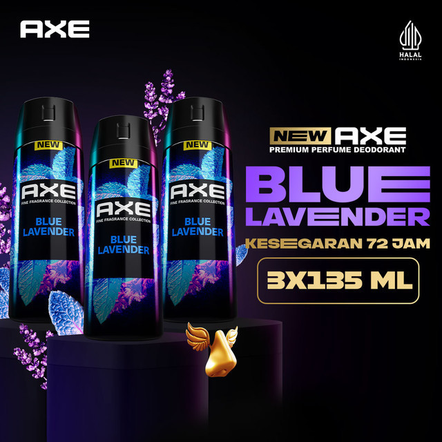 Deodorant AXE Premium Perfume Blue Lavender 135ml Paket Tiga Aroma Tahan Lama