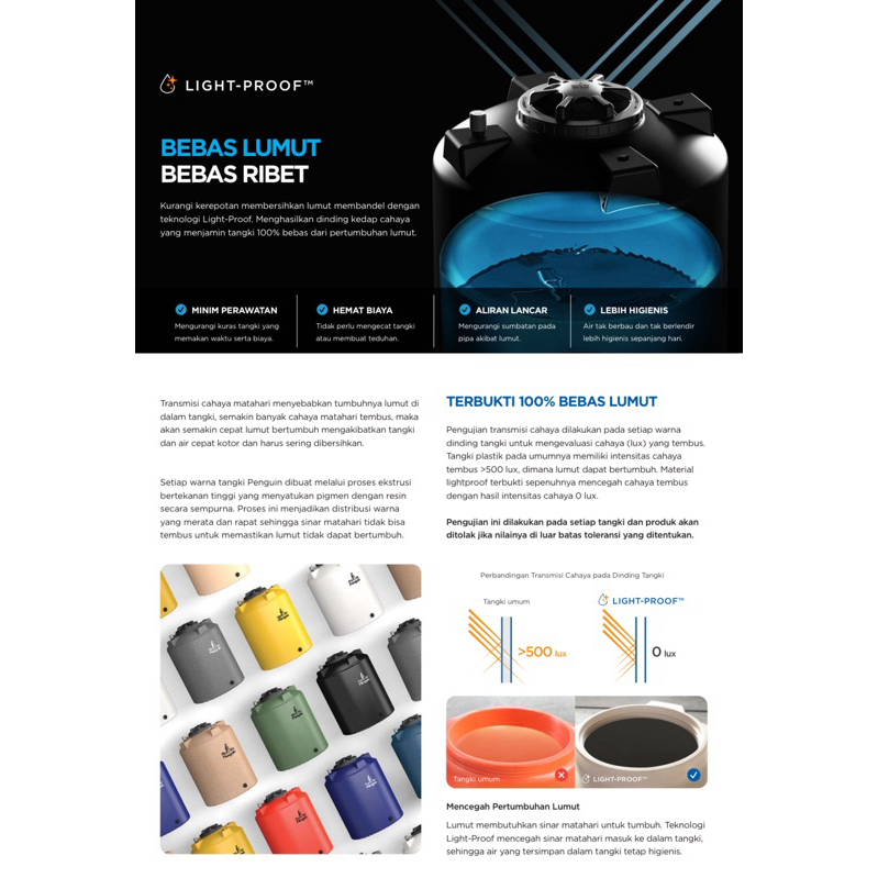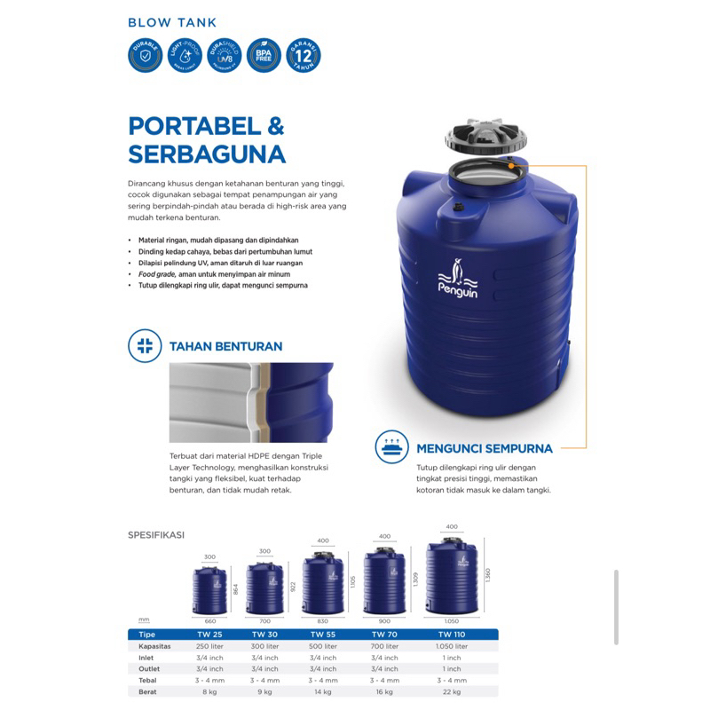 Toren / Tandon / Tangki Air Penguin TW Blow Tank kapasitas 250 / 300 / 500 / 700 / 1050 Liter