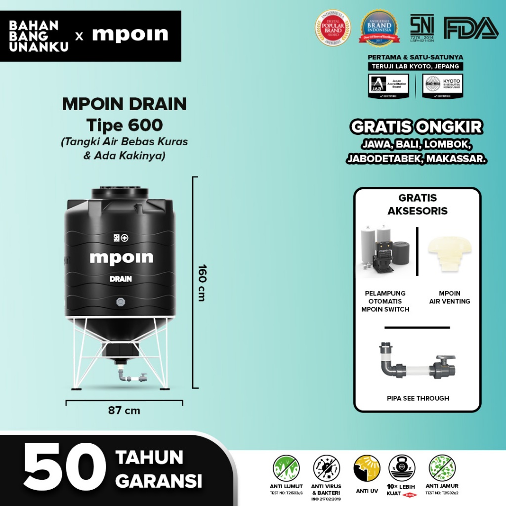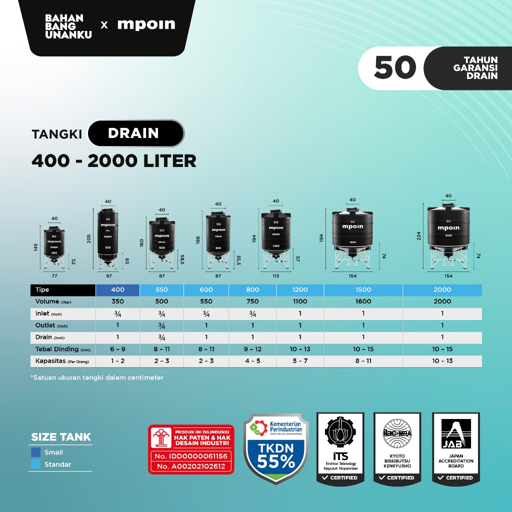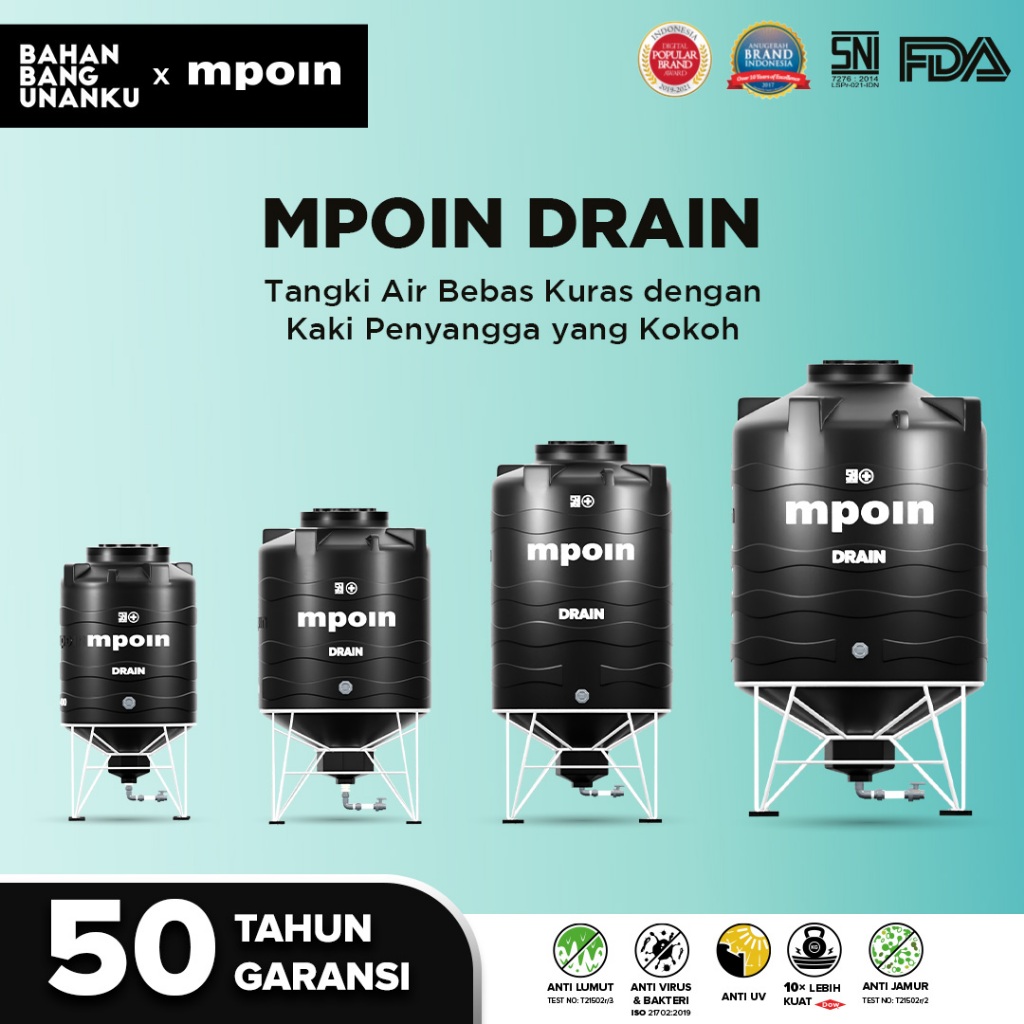 MPOIN PLUS 350 - 2000 L DRAIN - SNI TANGKI AIR TANDON AIR TOREN AIR GARANSI 50TH ANTI LUMUT&ANTI UV