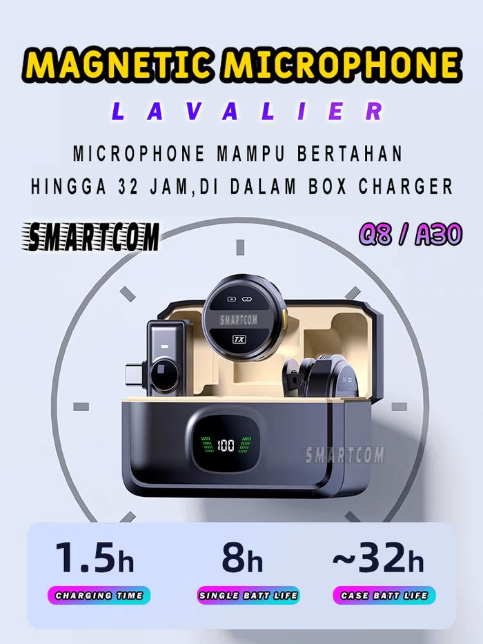 [PROMO] SMARTCOM Q8A30 WIRELESS CLIP ON MIC MICROPHONE DUAL MIKROFON WIRELESS MIKROFON HP LAVALIER MICROPHONE PLUG & PLAY LIGHTING