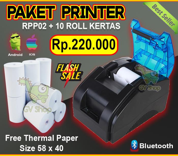 [PROMO] SMARTCOM PAKET PRINTER THERMAL BLUETOOTH RPP02 10 ROLL KERTAS BLACK