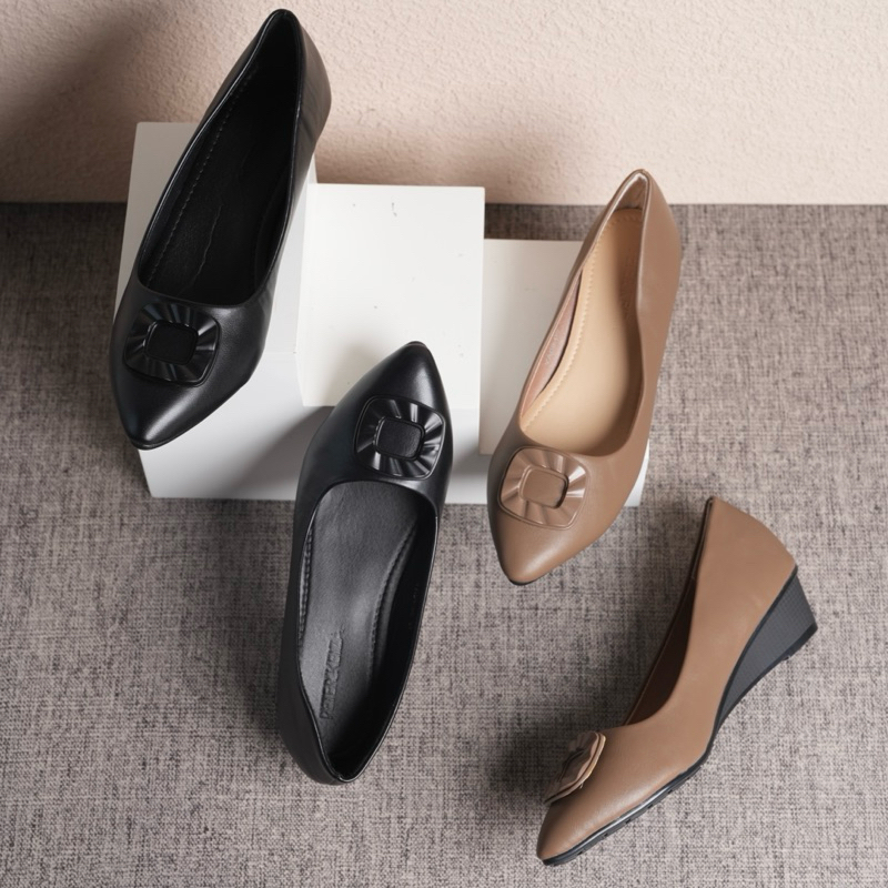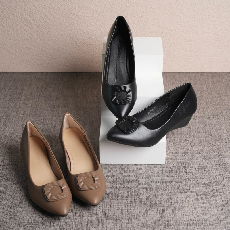 Peter Keiza Sepatu Wedges Wanita Kerja Kondangan Elegan Hitam Heels 4 cm YA 09-05