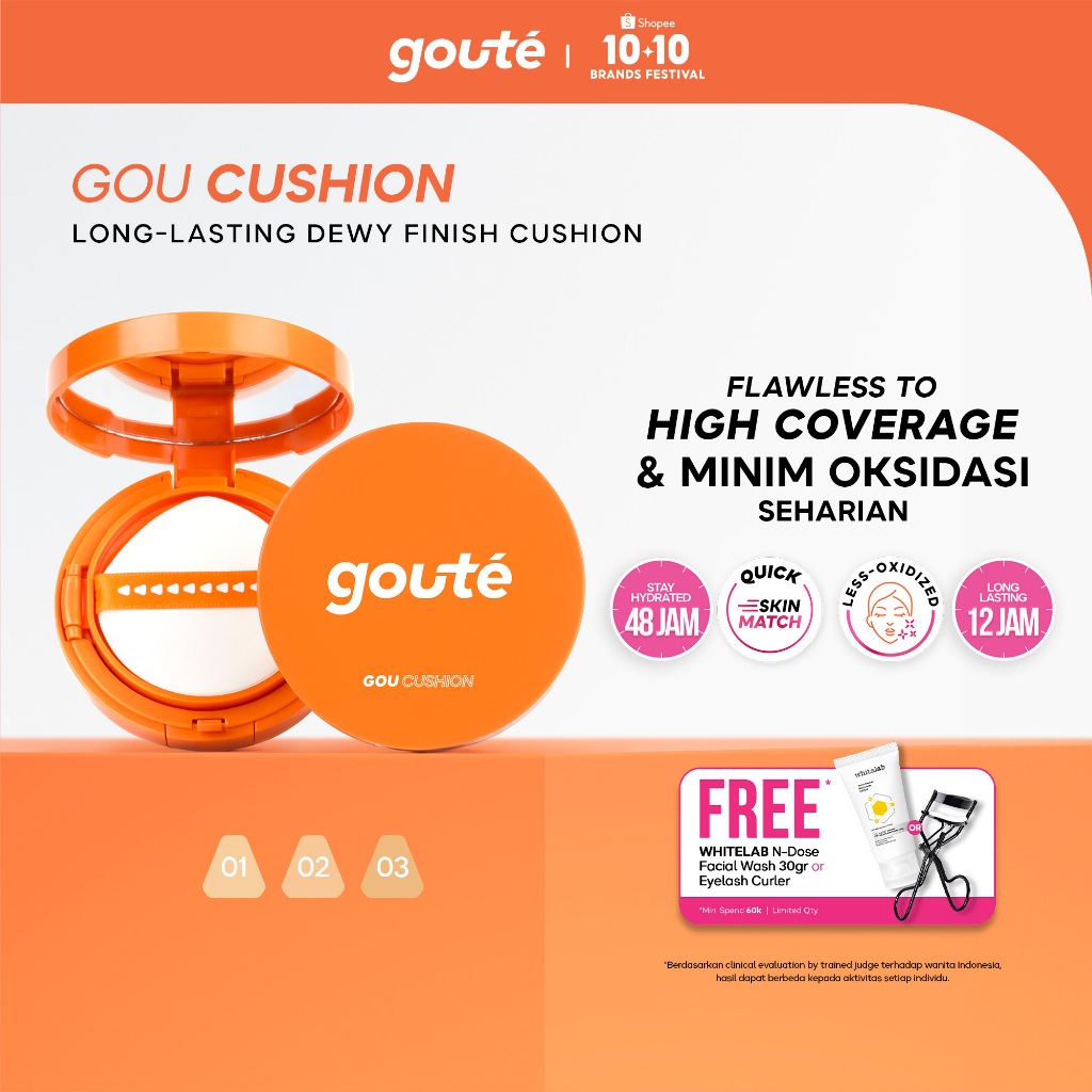 Cushion Goute Dewy Finish Long Lasting 12 Jam Glow Look Hydrating Medium Full Coverage