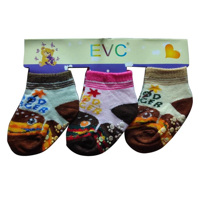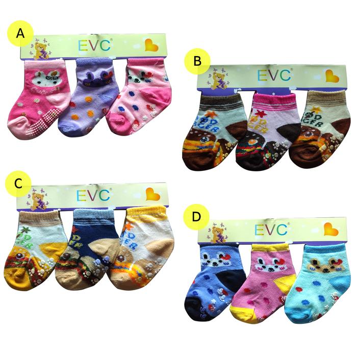 [PROMO] KAOS KAKI BAYI EVC 3PCS DENGAN KARET ANTI SELIP BABY NEWBORN MOTIF A