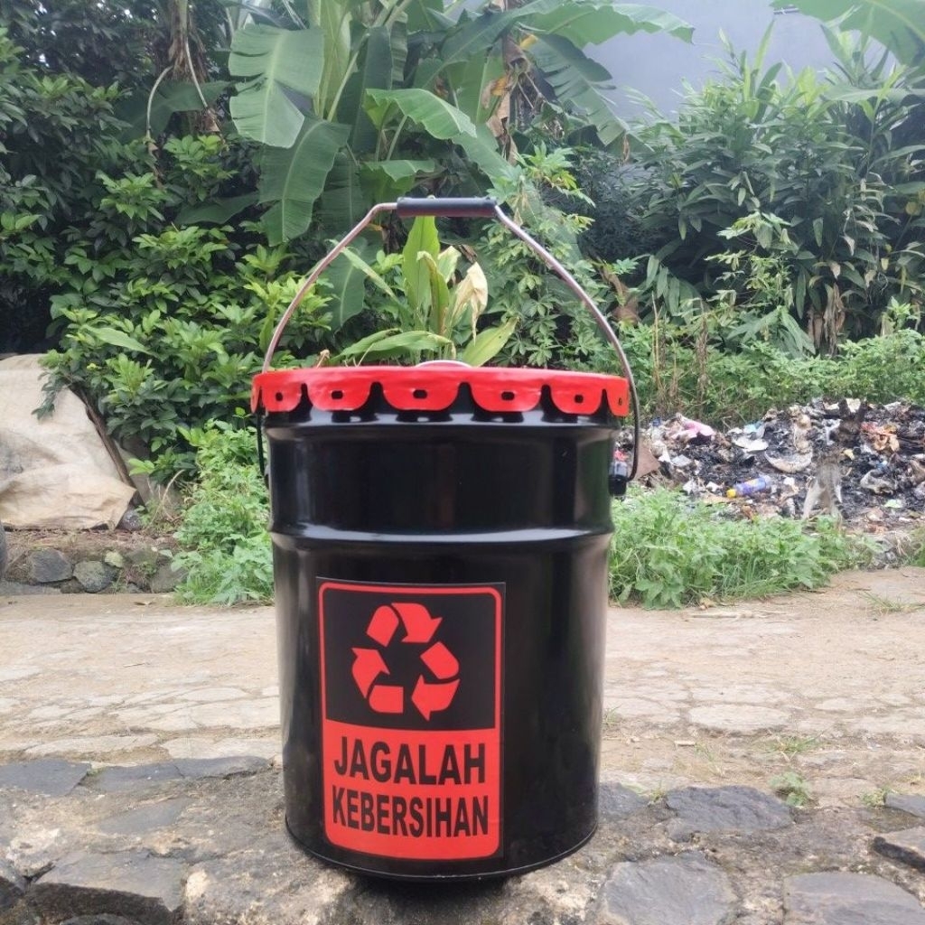 TONG SAMPAH KALENG BESI 25L HITAM TUT MERAH