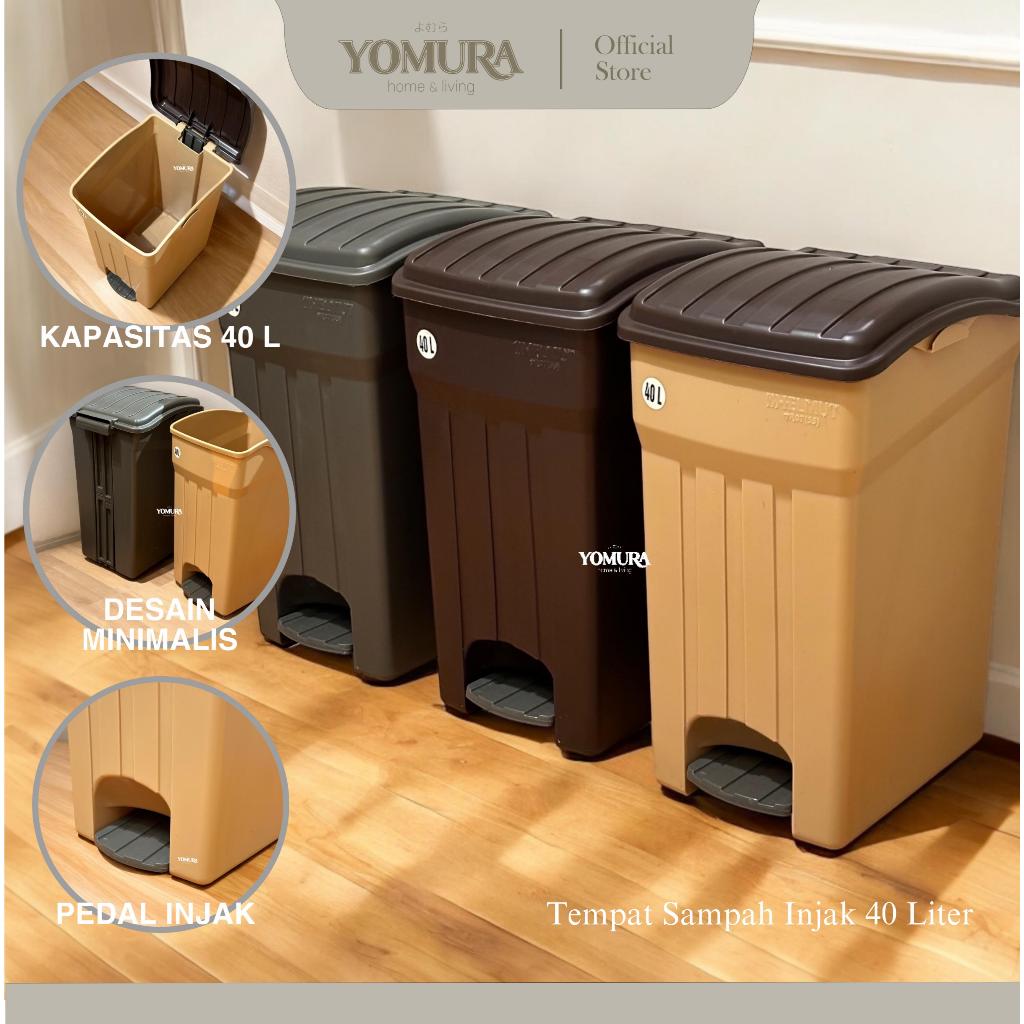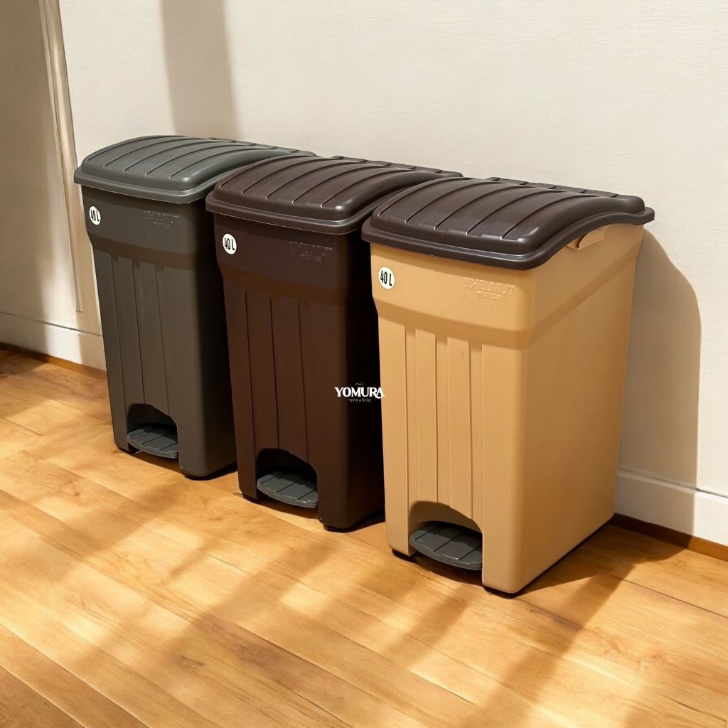 YOMURA Tempat Sampah Injak 40 Liter Earth Tone Color - Tong Sampah Plastik Trash Bin Kotak Sampah Dapur Dengan Pedal 40L
