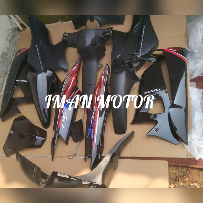Cover Motor Supra Fit X Full Hitam Plus Striping Bodi Halus Kasar