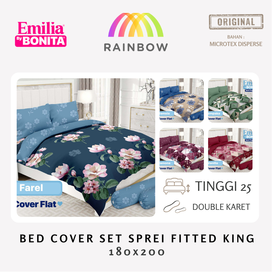 Emilia - Bed Cover SET SPREI FITTED King T25 (180x200) tinggi 25 by Bonita OFFICIAL Terlaris Pilihan