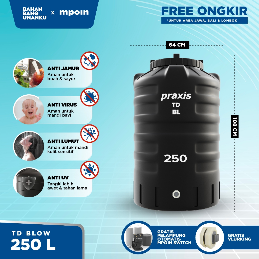TANDON PR TD BL 550 L SNI Tangki Air Toren Elastis - Anti Lumut Anti UV GRATIS