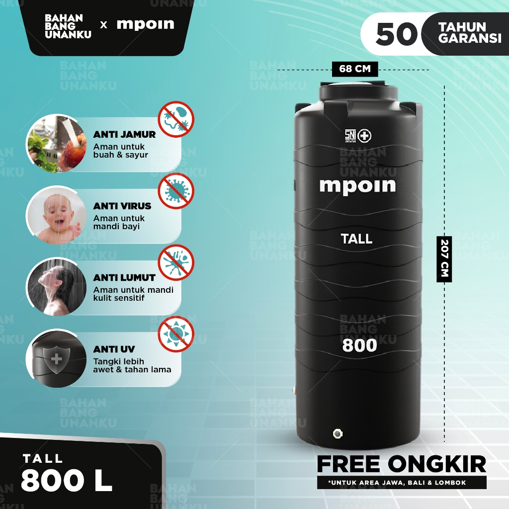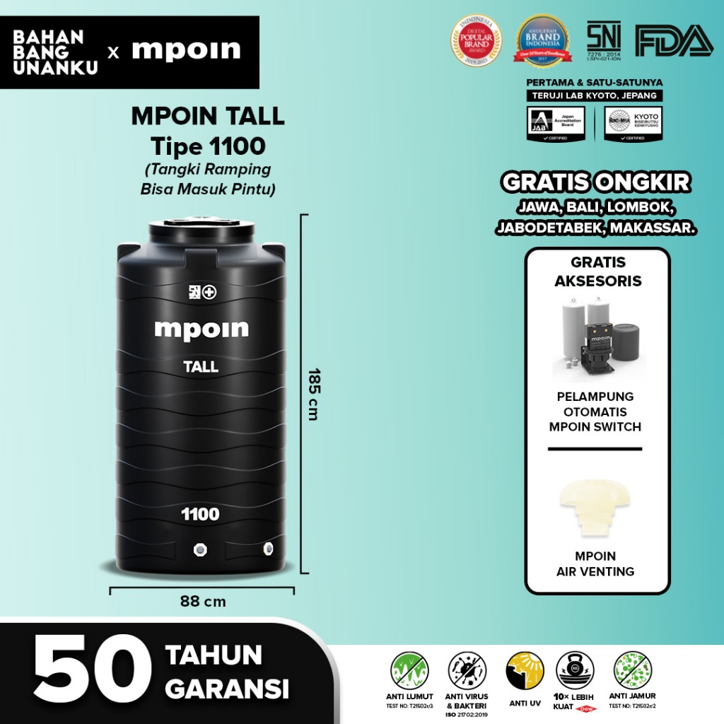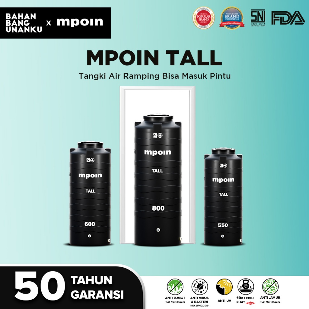 MPOIN PLUS 280 - 1100 L WAVE TALL MINIMALIS - SNI TANGKI AIR TANDON AIR TOREN AIR ANTI LUMUT 50THN
