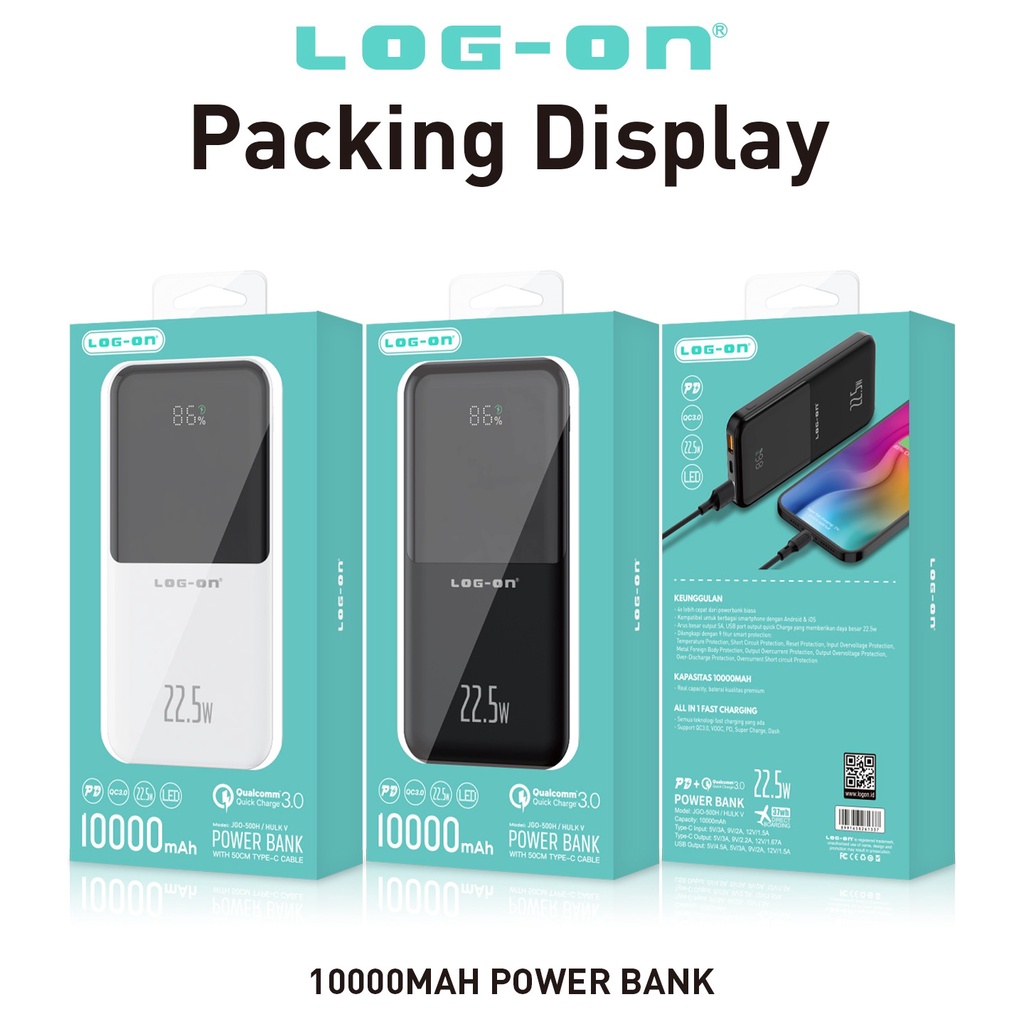 Power Bank LOG ON Hulk V 10000mAh Fast Charging 22.5W Termasuk Kabel Type C