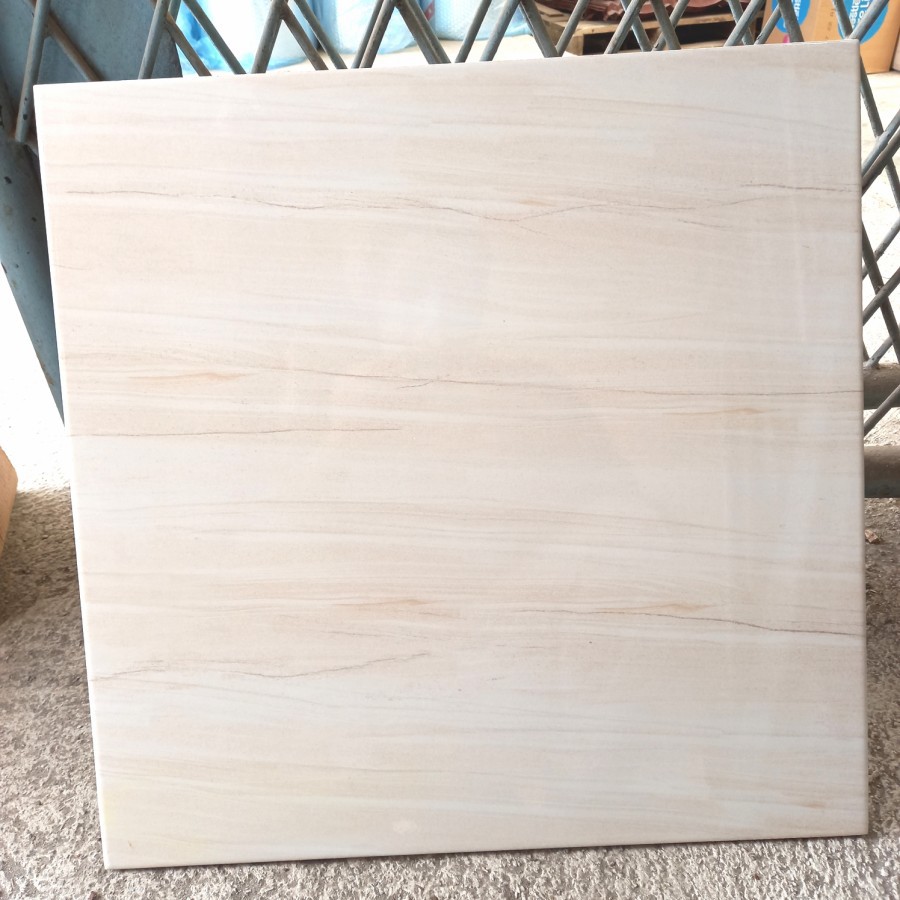 KERAMIK LANTAI GLOSSY HALUS 50X50 SYON CREAM MARMER SALUR MERK IKAD