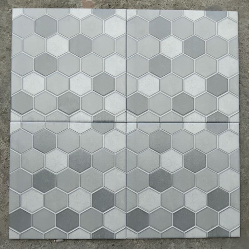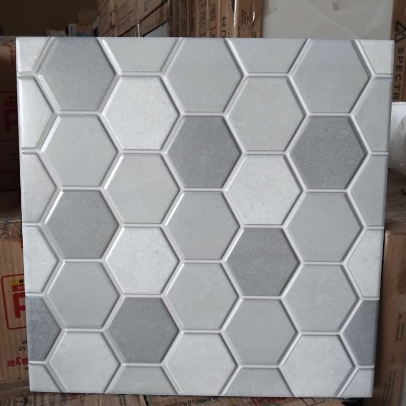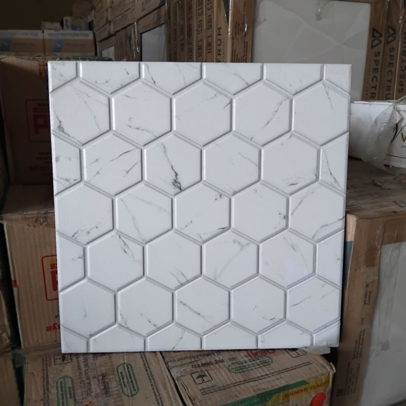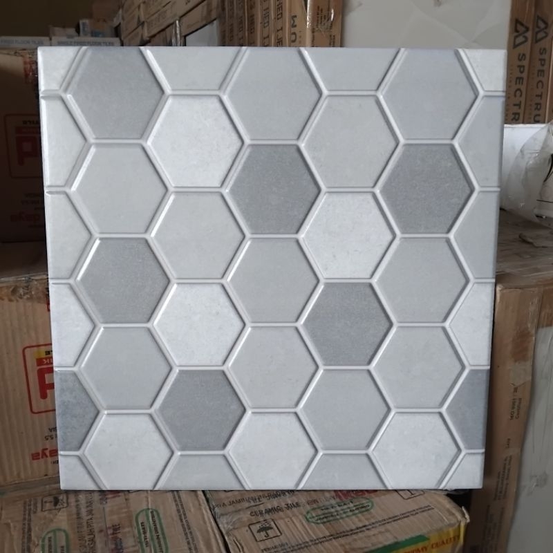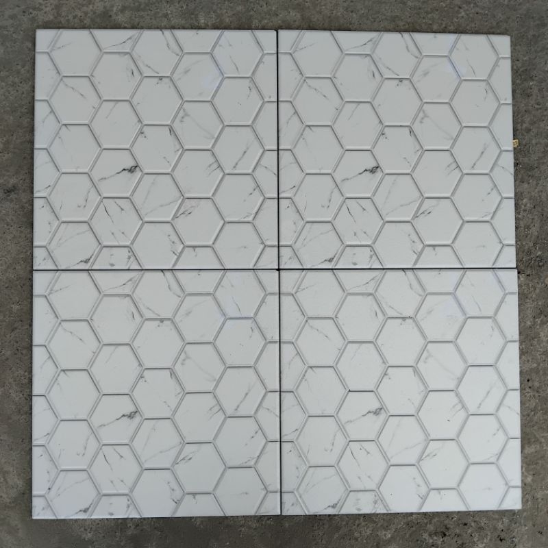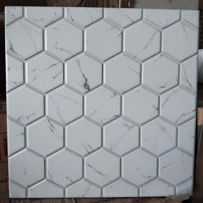 KERAMIK 40x40 HEXAGON MARMER WHITE CARARA - GREY MATT