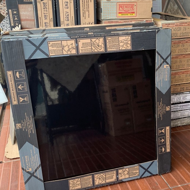 KERAMIK LANTAI DINDING PLATINUM 60X60 SALSA BLACK HITAM BLACK POLOS GLOSSY CUTTING