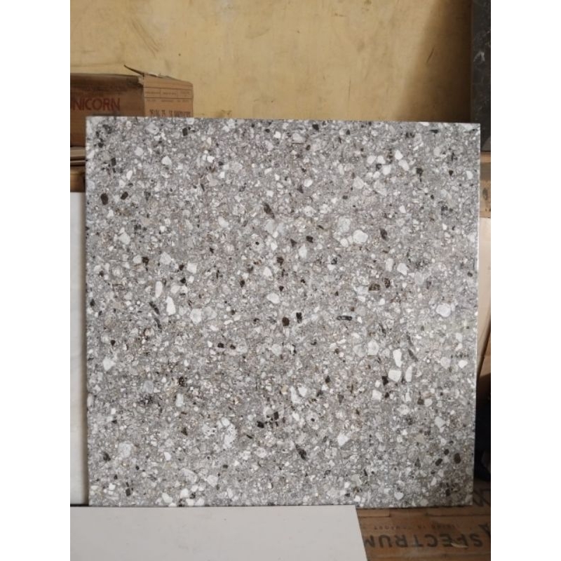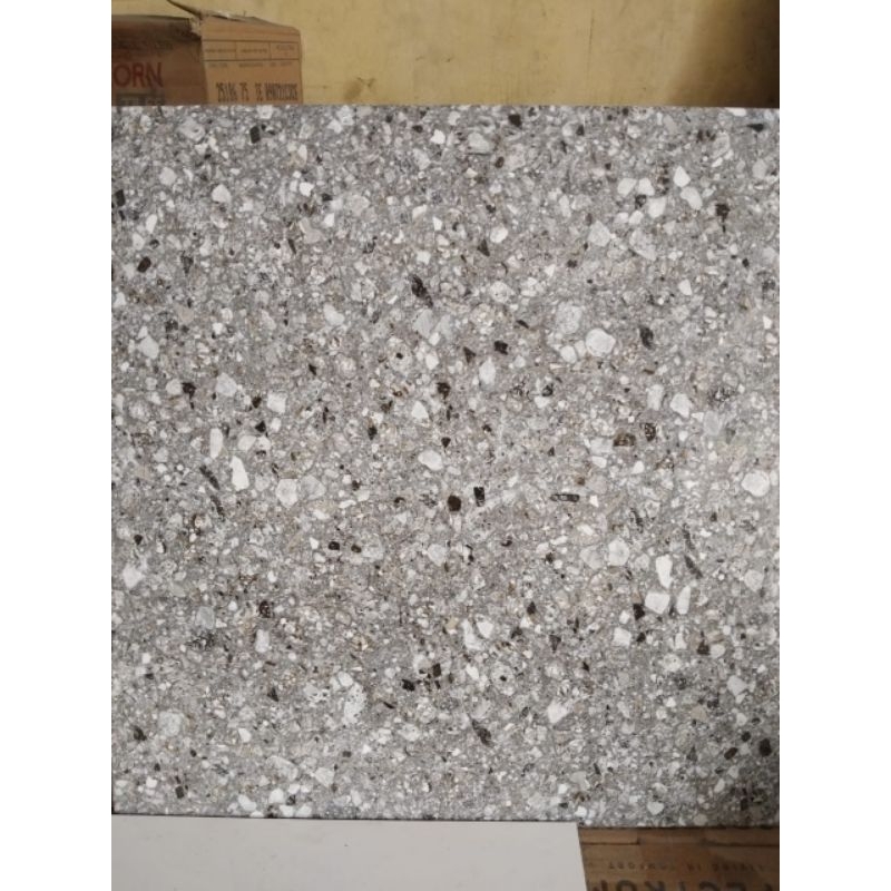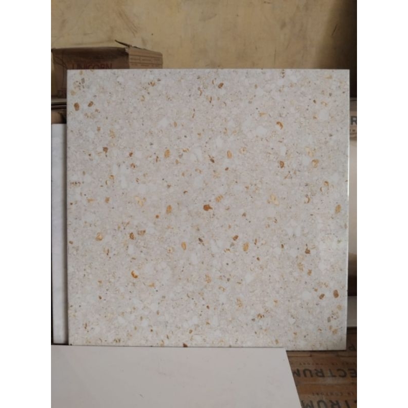 Keramik 50x50 GLOSSY TERASO ABU GREY - CREAM BINTIK