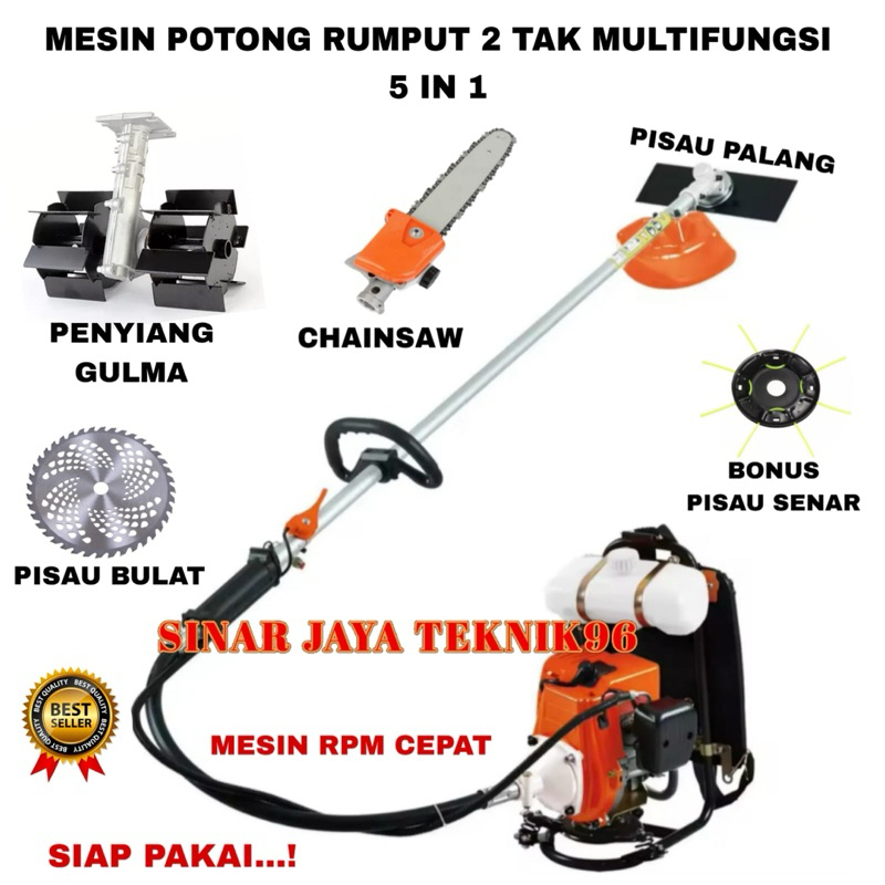 Mesin P0T0NG Rumput 2 Tak Komplit Penyiang Gulma + Chainsaw P0T0NG Kayu Multifungsi