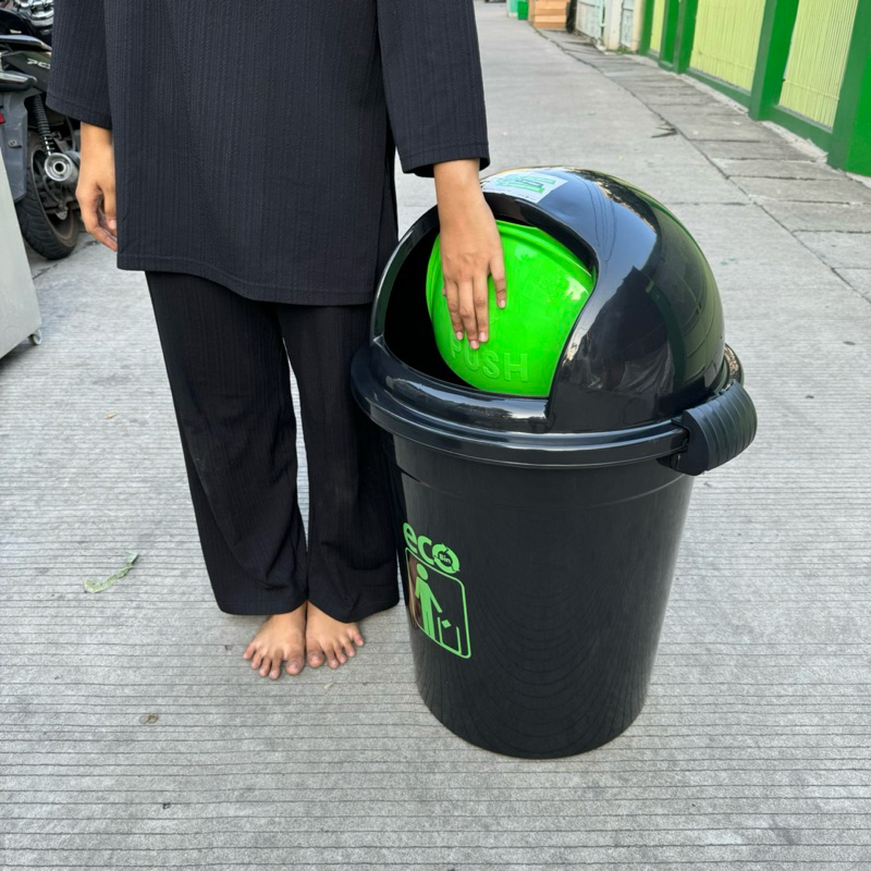 Atari - Tempat Sampah Bulat 50-80 Liter Tut Push- Tong Sampah Bulat Hitam