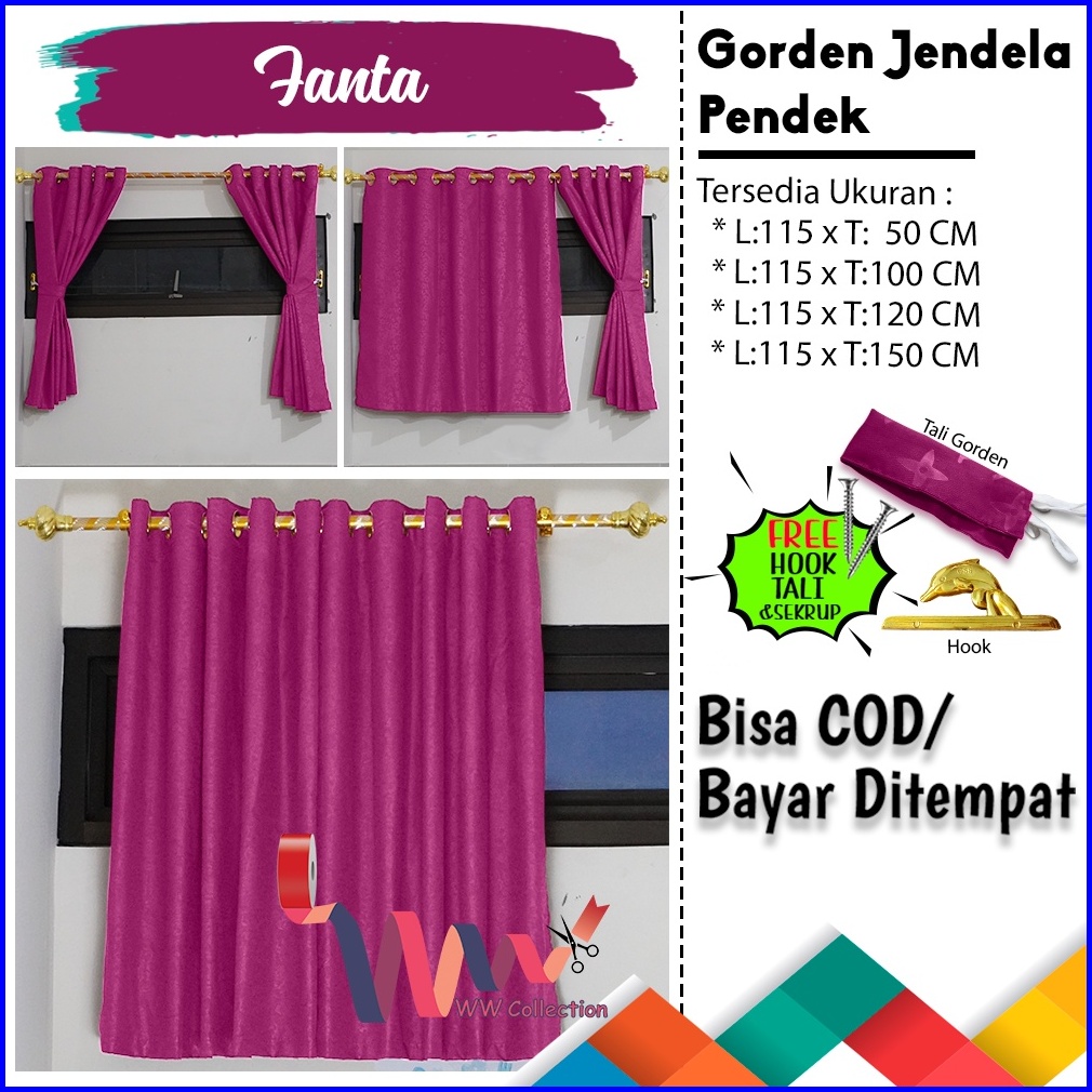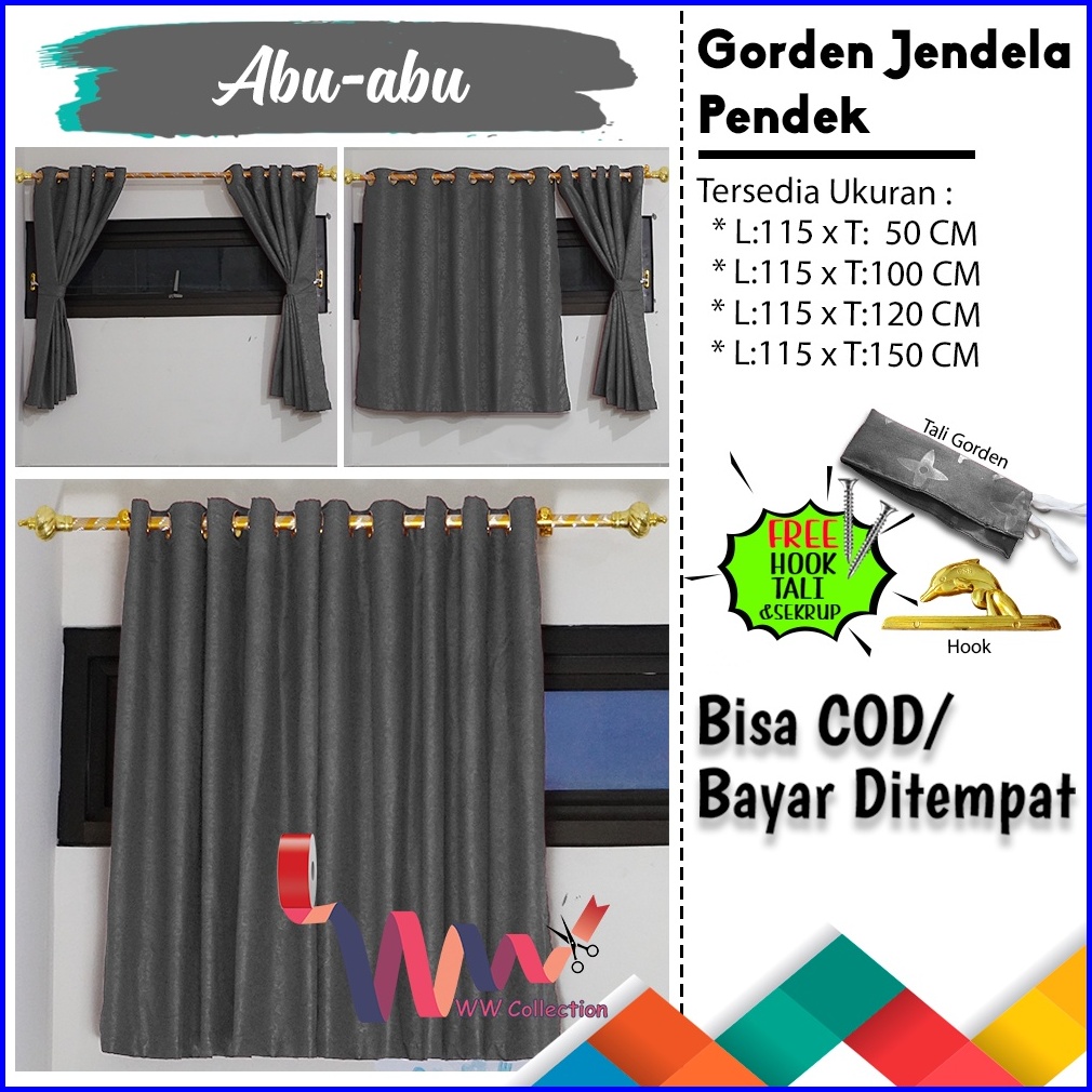 Gorden Jendela Kamar Pendek Ukuran Tinggi 120 Dan 150 Cm Hordeng Minimalis Kamar Dengan Smokring