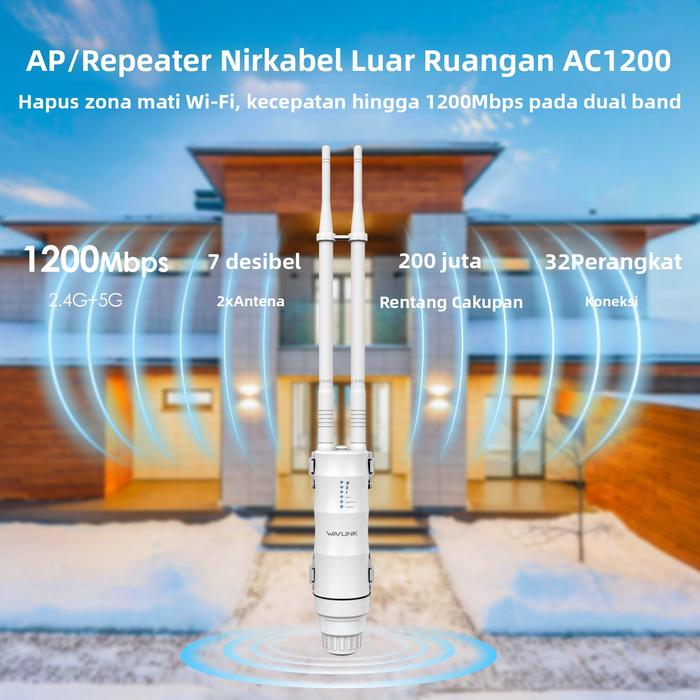 Wavlink Ac1200 Dual Band Outdoor Access Point, Extender Wi-Fi Jarak Jauh Luar Ruangan Dengan Poe Aktif / Pasif, Port Wan