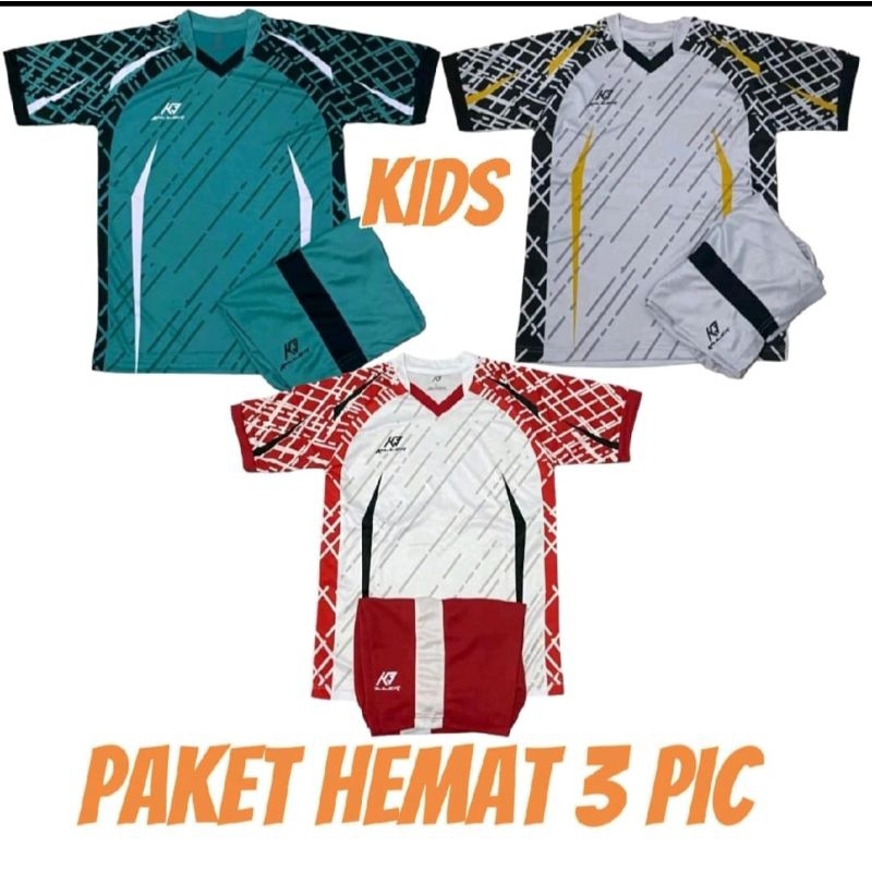 PAKET 3 SETEL/ SETELAN BAJU BOLA ANAK KIDS SD/SMP/TERBARU JERSEY FUTSAL ANAK LAKI LAKI BAJUFUTSAL ANAK 5-13 TAHUN PAKEAN OLAHRAGA ANAK