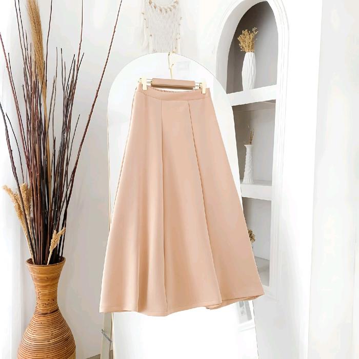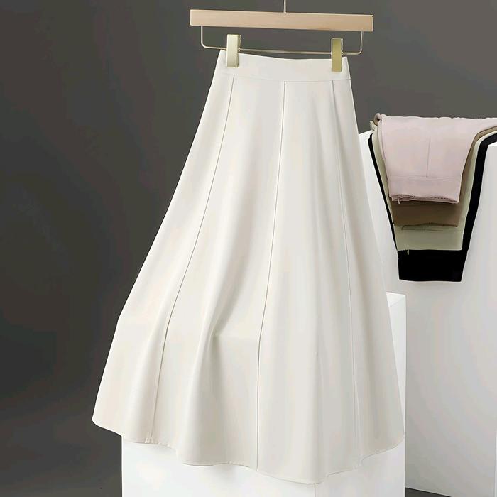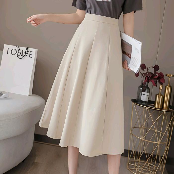 Rok Casual Wanita Ivory Milo Cream Hitam Dewasa - Bawahan, Serut, Cewek Midi Formal Midi - Scuba, Cantik, Karet, Nyaman
