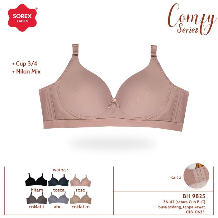 Sorex Bra Tanpa Kawat Busa Sedang Cup B-C Kait 3 Comfy Adem BH 9825