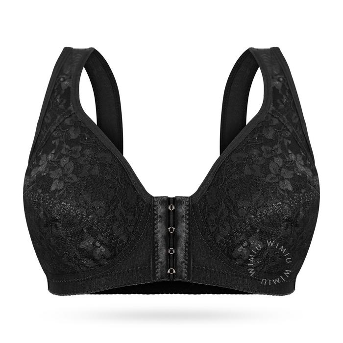 WIMIU BH Bra Wanita Kait Kancing Depan BH Tanpa Kawat Tanpa Busa Motif Bunga Brokat Wireless Bra