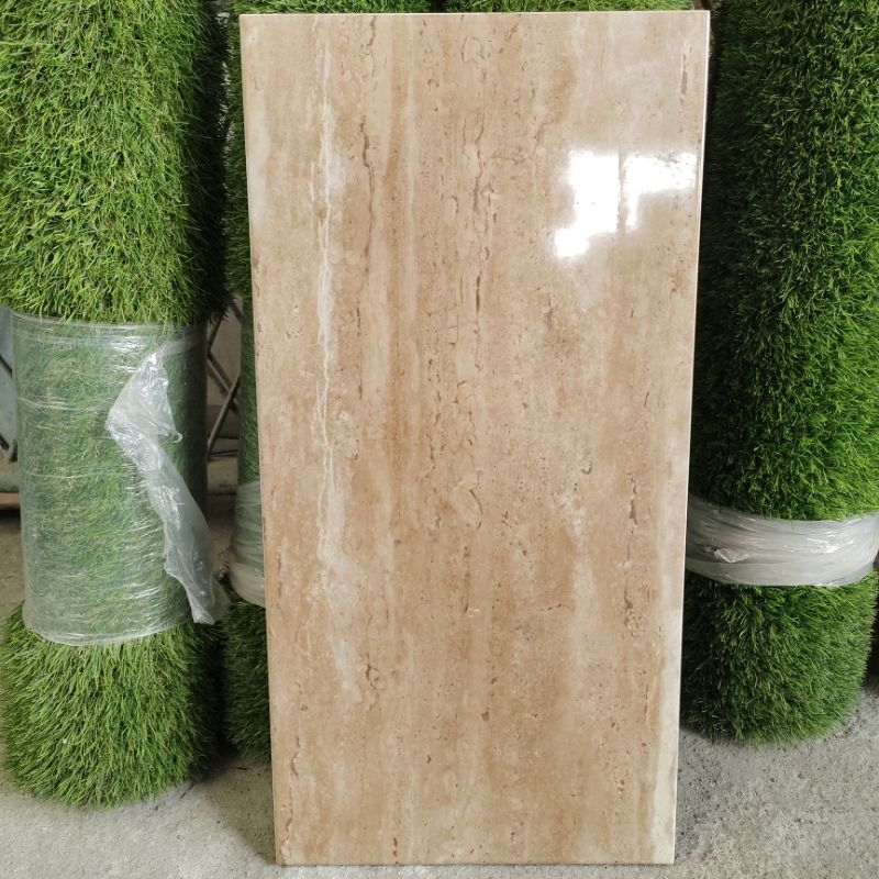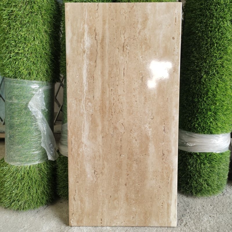 KERAMIK 30X60 GLOSSY CREAM COKLAT MARMER