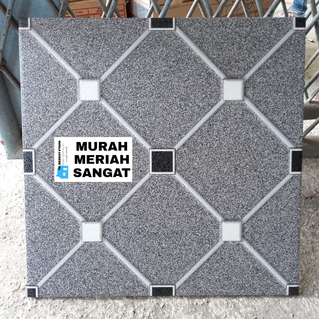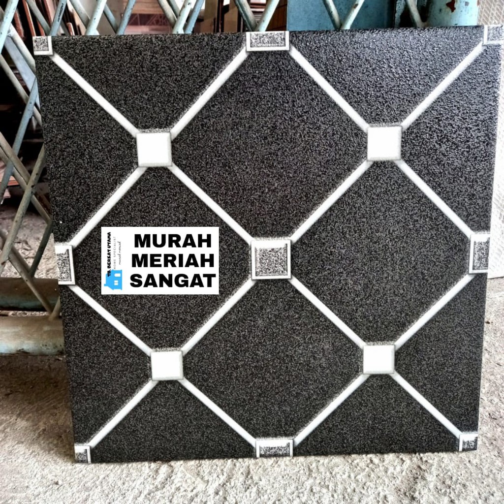 KERAMIK LANTAI GARASI 40x40 KASAR MOTIF HEXAGON KOTAK PUTIH HITAM ABU CREAM- YHC