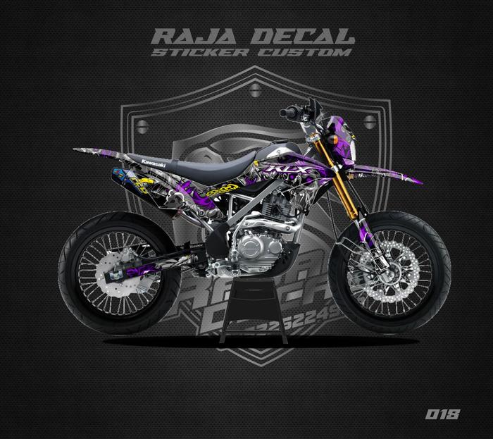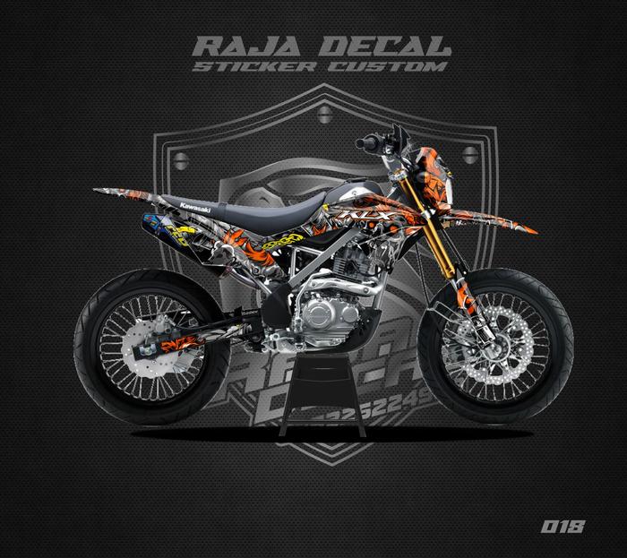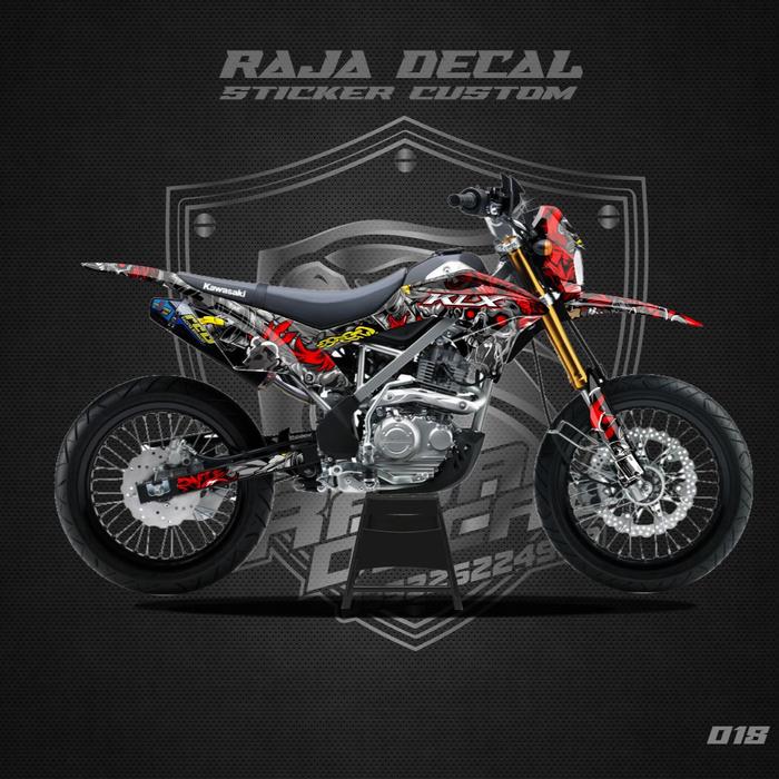 CICILAN TANPA DP DECAL STICKER MOTOR CROSS KLX 150 BF FULLBODY DEKAL STIKER KLX BF G EXTREME DESAIN SKULL KLX 018 MERAH