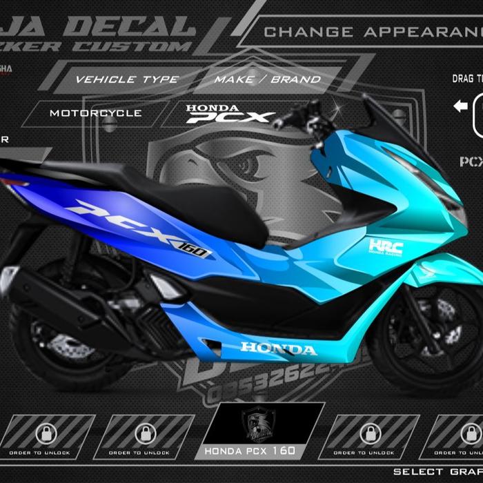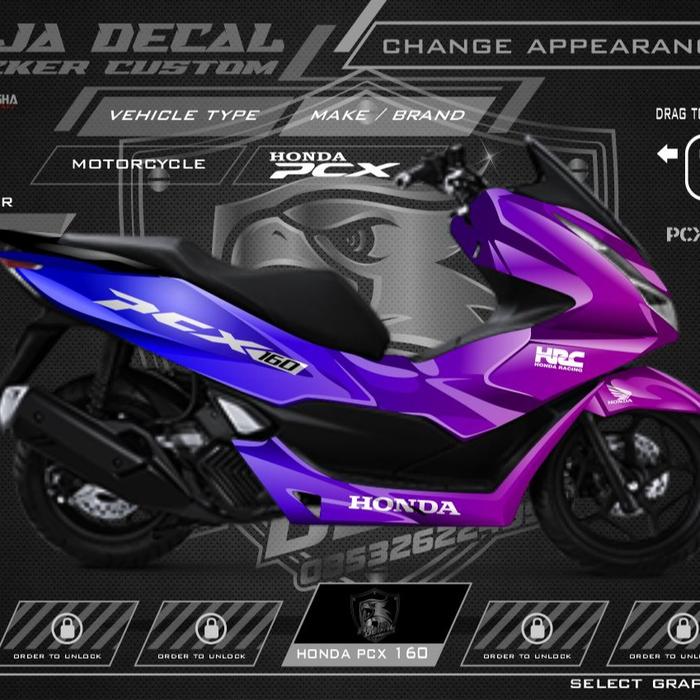 CICILAN TANPA DP DECAL STICKER HONDA PCX 160 FULLBODY CUSTOM MOTIF GRADASI KODE PCX 004 BIRU UNGU