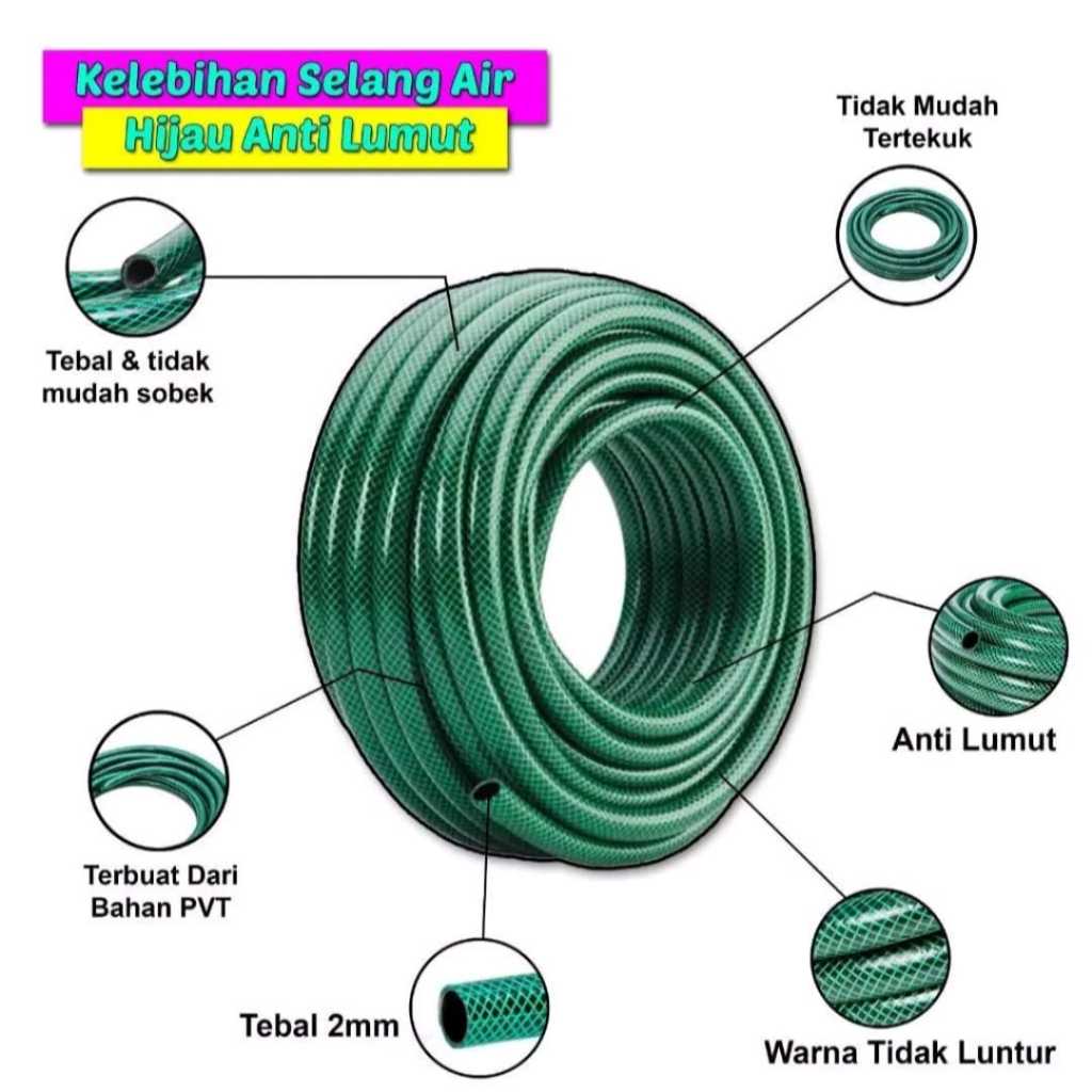 Selang Semprotan Air Benang Hijau Anti Lumut Tekuk Taman Cuci Mobil Motor Lengkap