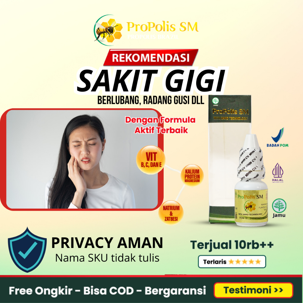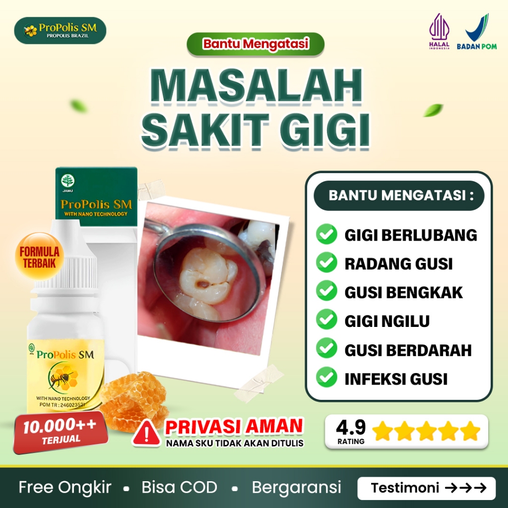 Obat Sakit Gigi Berlubang Radang Gusi Bengkak Kronis Abses Gusi Bernanah - Propolis Sm 100 PERSEN Asli