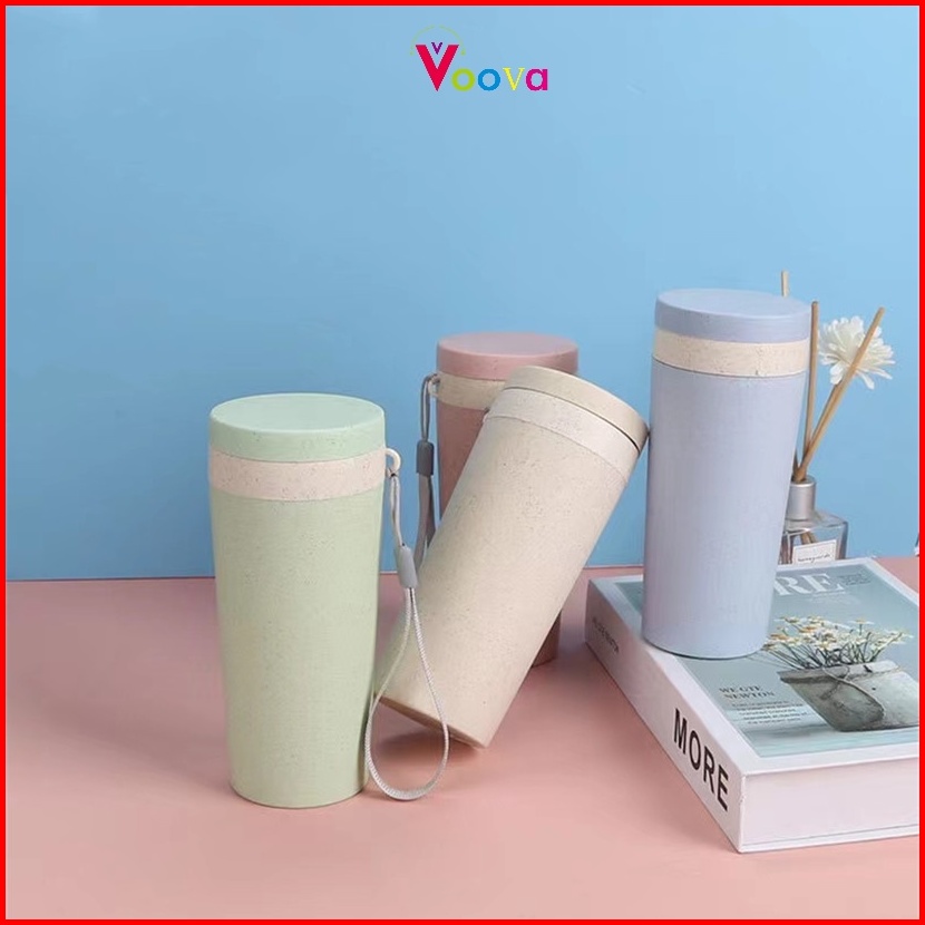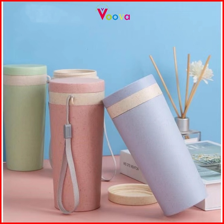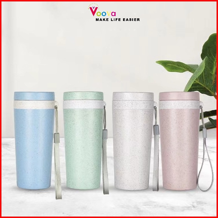 Voova Gelas Termos Gandum Cangkir Termos Jerami Gandum Cangkir Portabel Tali Portabel Sederhana Cangkir Termos Lapisan G