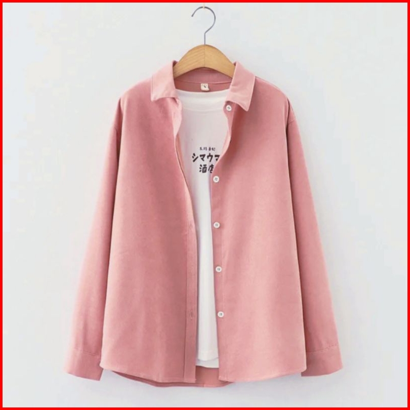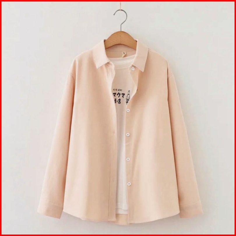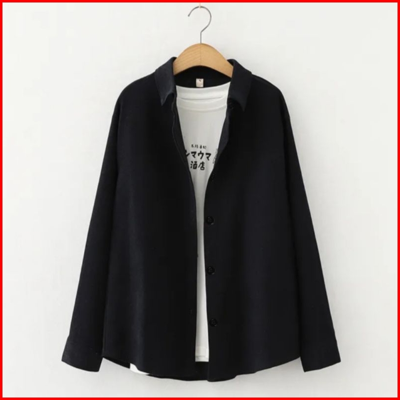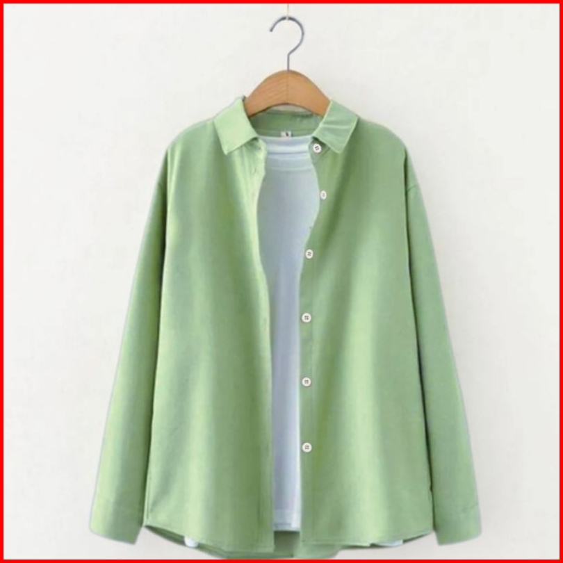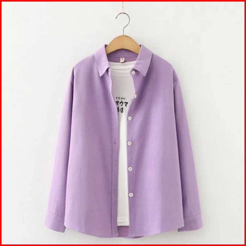 Kemeja Wanita Polos Kemeja Basic Lengan Panjang Wanita Katun Simple Hitam Putih Navy Pink Marun Sage Atasan Kasual Forma