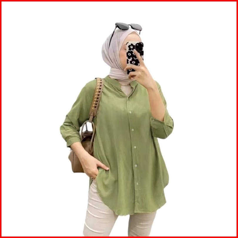 Kemeja Wanita Rayon Twill Polos Top Blouse Basic Kemeja Wanita Lengan 7 8 Wanita Over Size