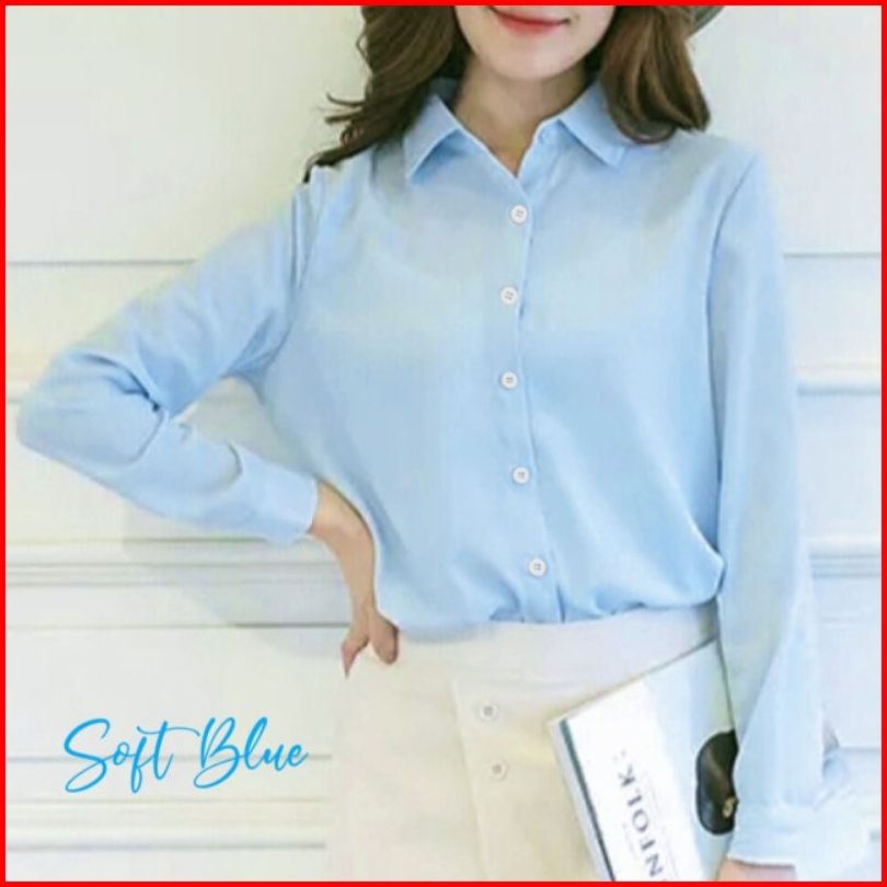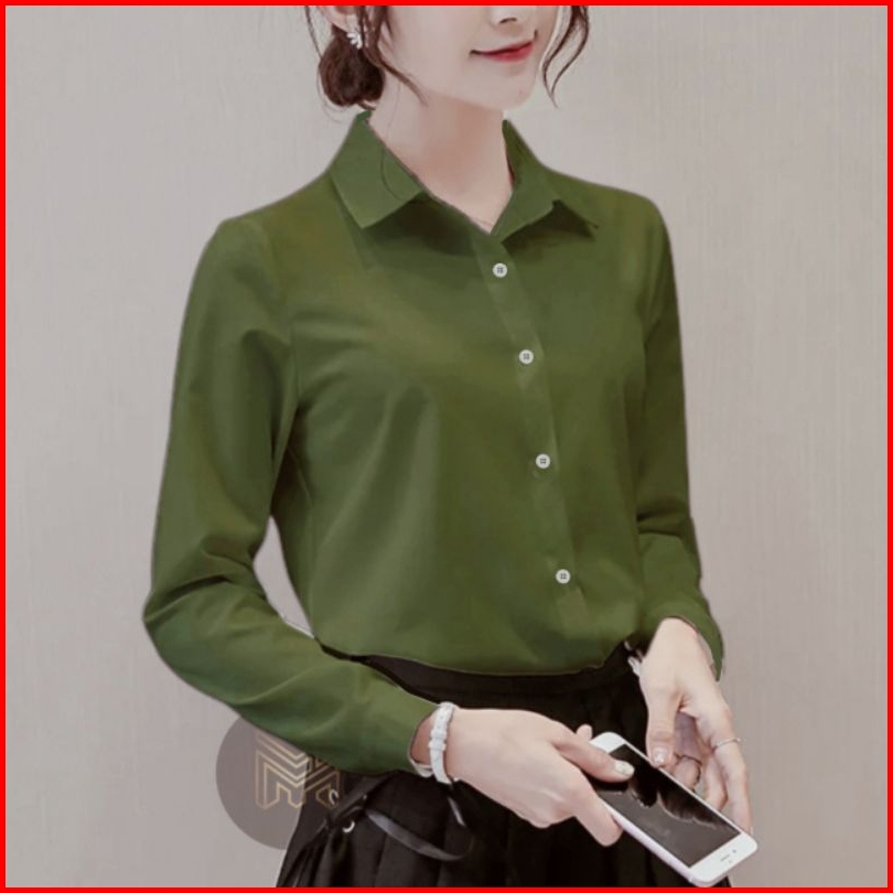 Baju Kemeja Wanita Lengan Panjang Polos Basic Kemeja Hitam Putih Navy Army Sage Pink Formal Kasual Kerja