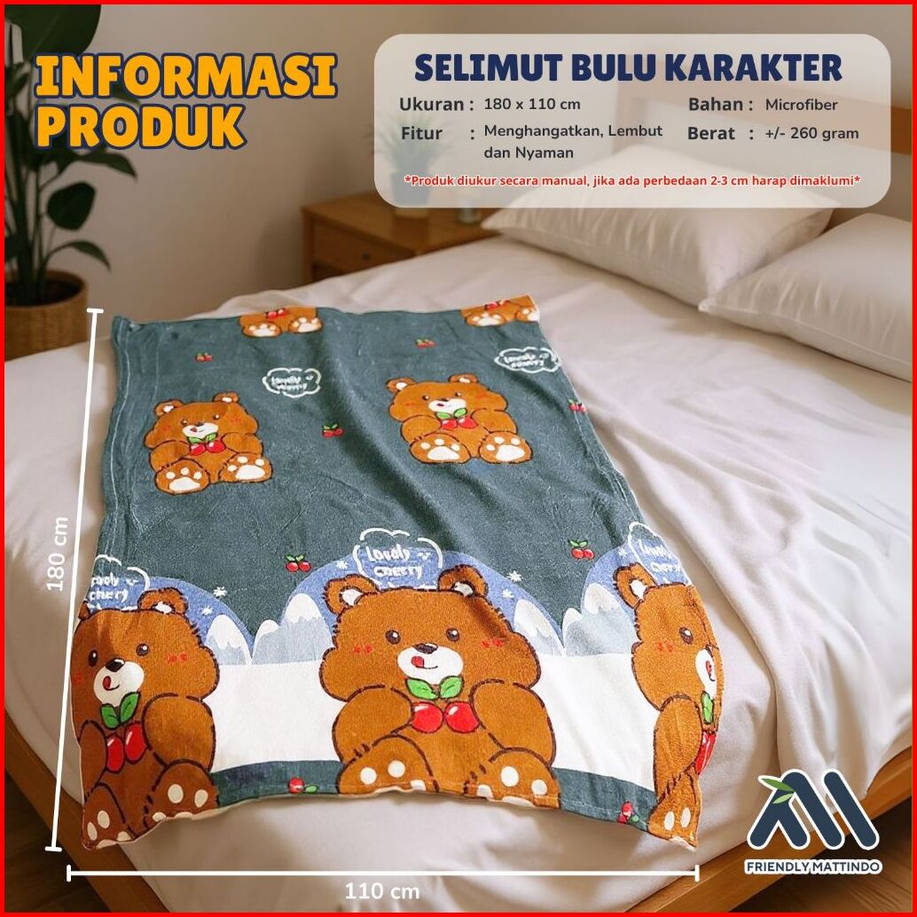 Selimut Bulu Anak Karakter 108 X175 Cm Bahan Microfiber Lembut Premium Xs-1a