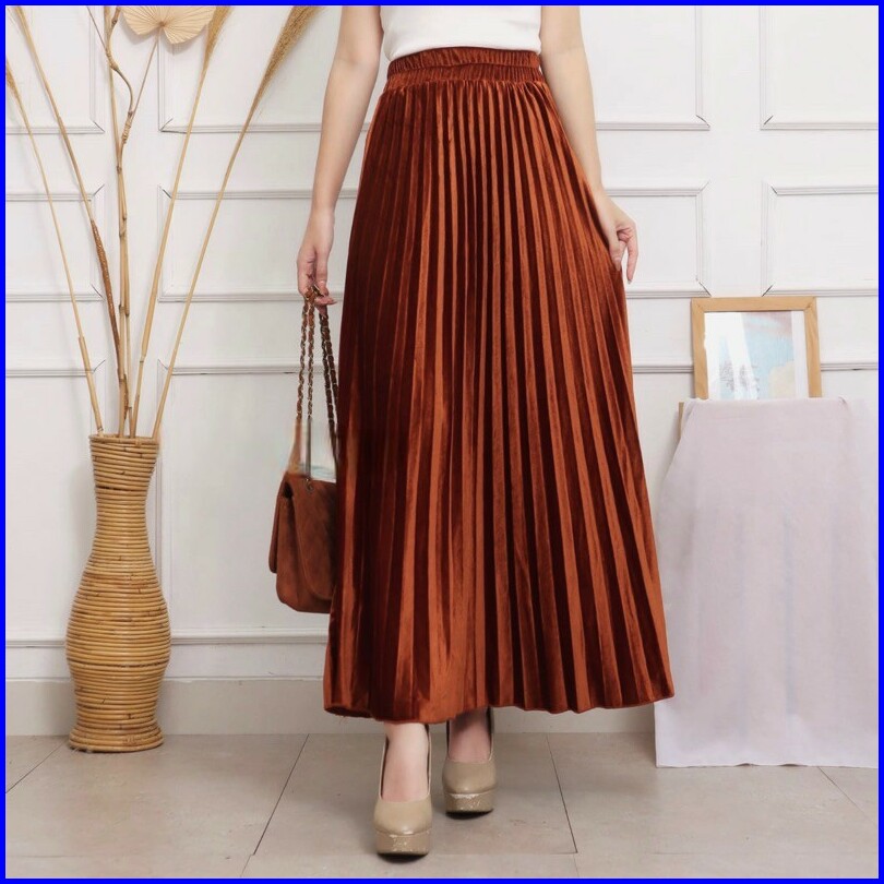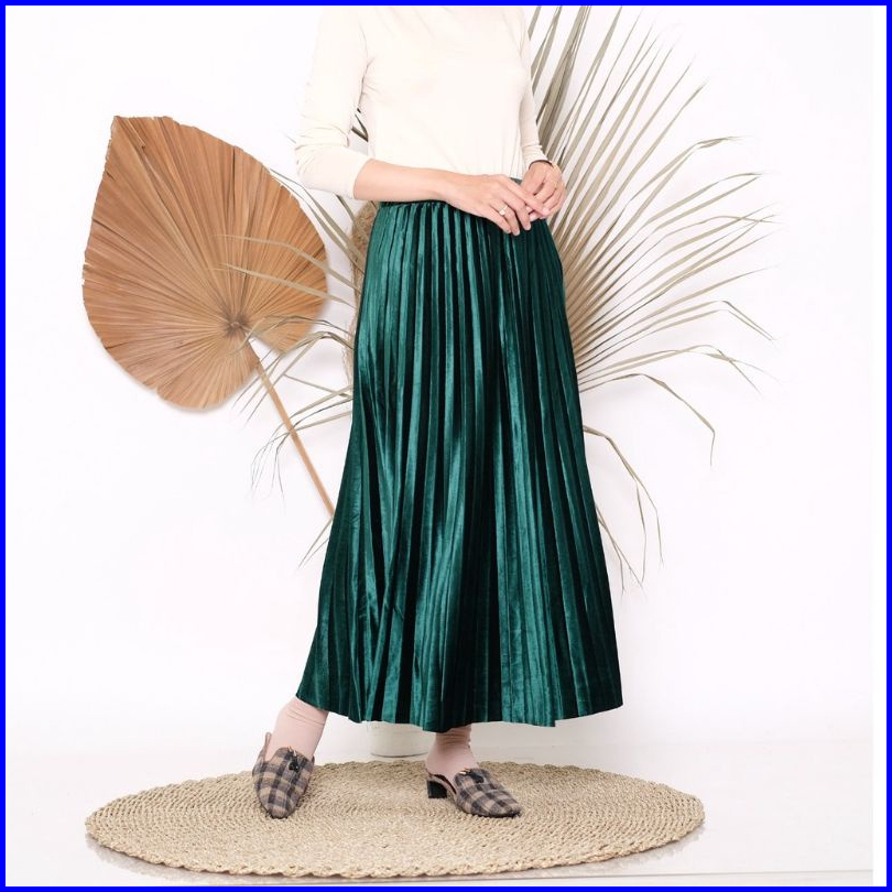 Rok Plisket Bludru Velvet 7 8 Premium Rok Plisket Bludru Pendek