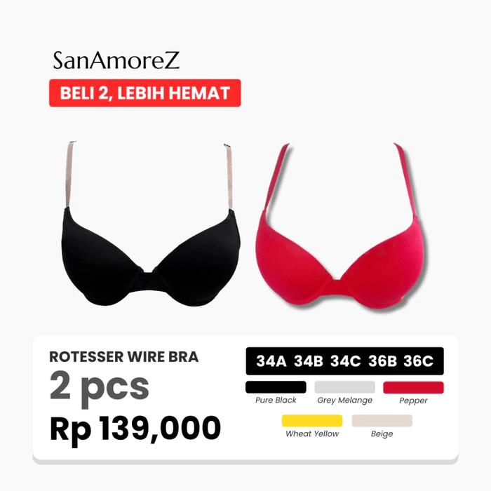 SanAmoreZ (2 Pcs) Seamless Wire Push Up Bra / Bra Kawat Push Up - Cotton / Polyamide Size 34A - 36C