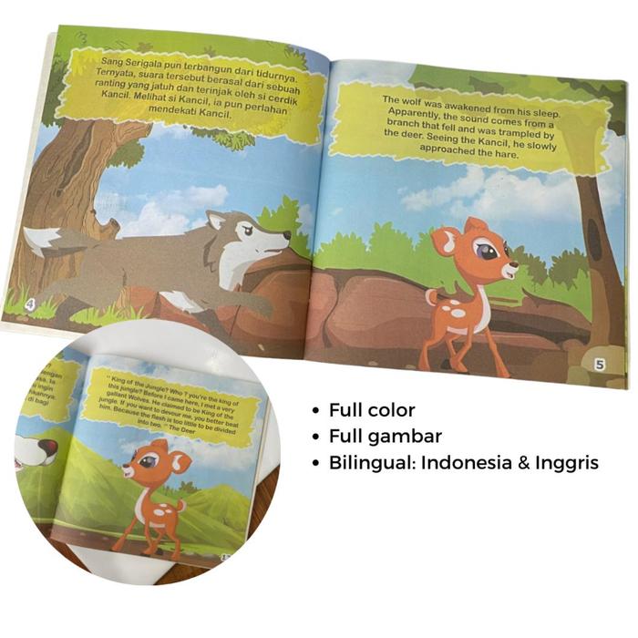Buku Dongeng Cerita Anak Bergambar Seri Fabel Bilingual Full Colour Dua Bahasa Books - Dongeng isi 5