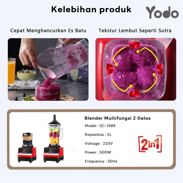 TERLARIS blender philips miyako cosmos set Blender Smoothie Electric 2L Serbaguna + Cangkir Penggiling 800ml | Blender