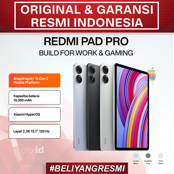 Redmi Pad Pro 12.1" (8/256GB) Snapdragon 7s HyperOS Baterai 10000 mAh Garansi Resmi Xiaomi Tablet iPad PC Se Pad 2 Murah