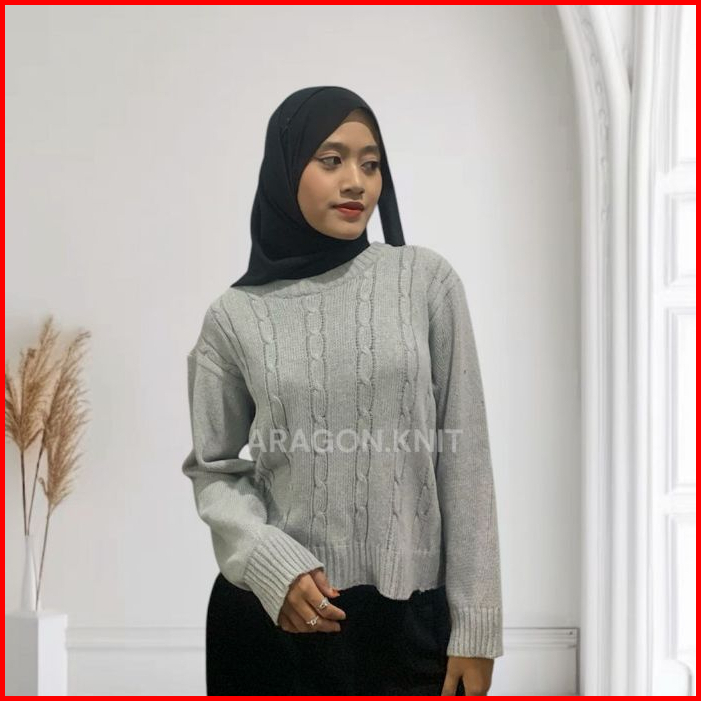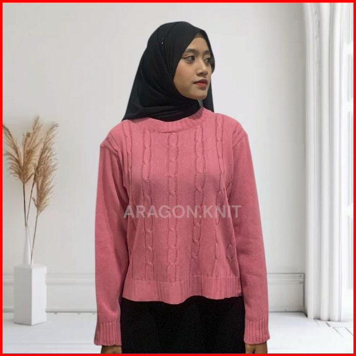 Aragon Hana Blouse Rajut Cable Crop Oversize Sweater Wanita Motif Cable Baju Atasan Wanita Terbaru Tangan Panjang Blouse