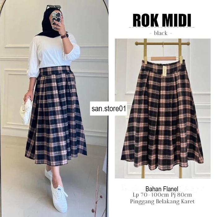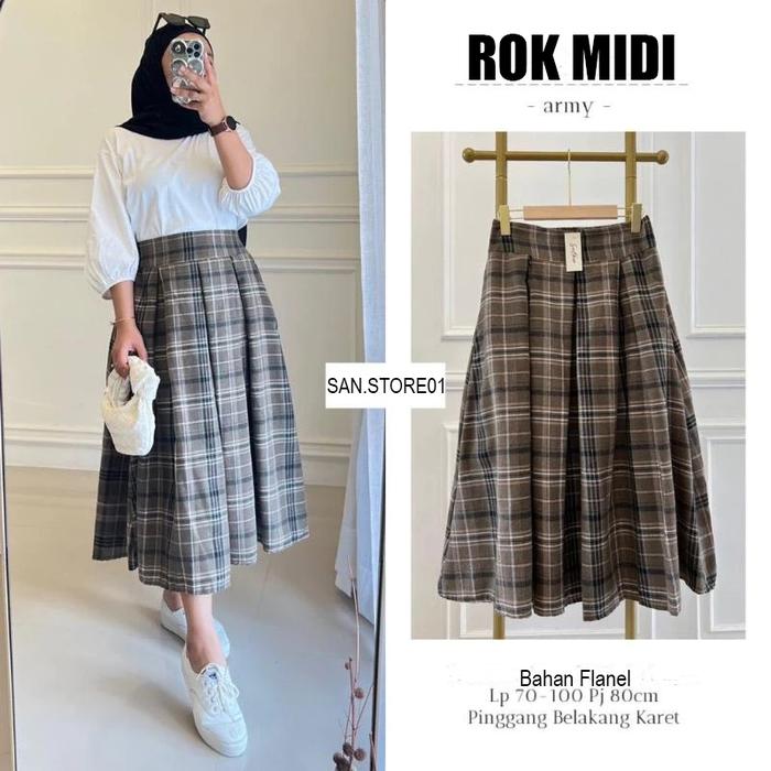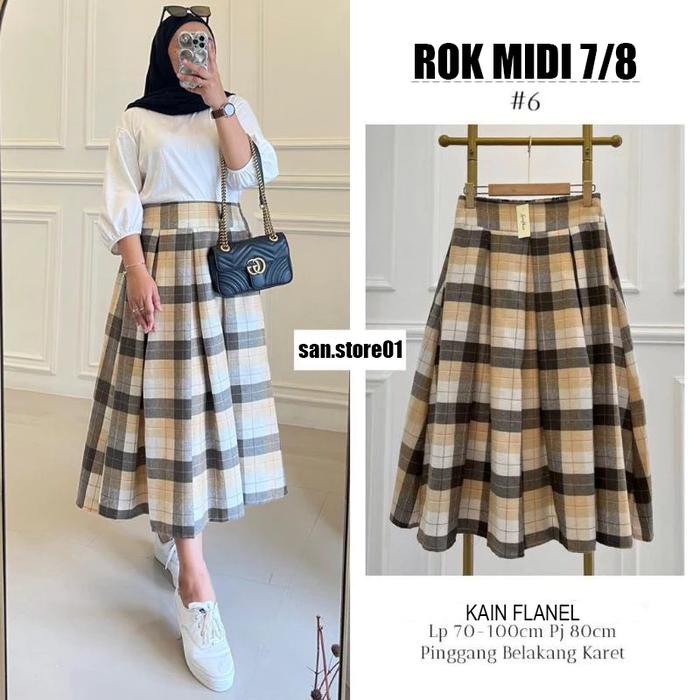 Rok Flanel Impor Midi 7/8 Untuk Wanita Dewasa Cargo - Motif 1