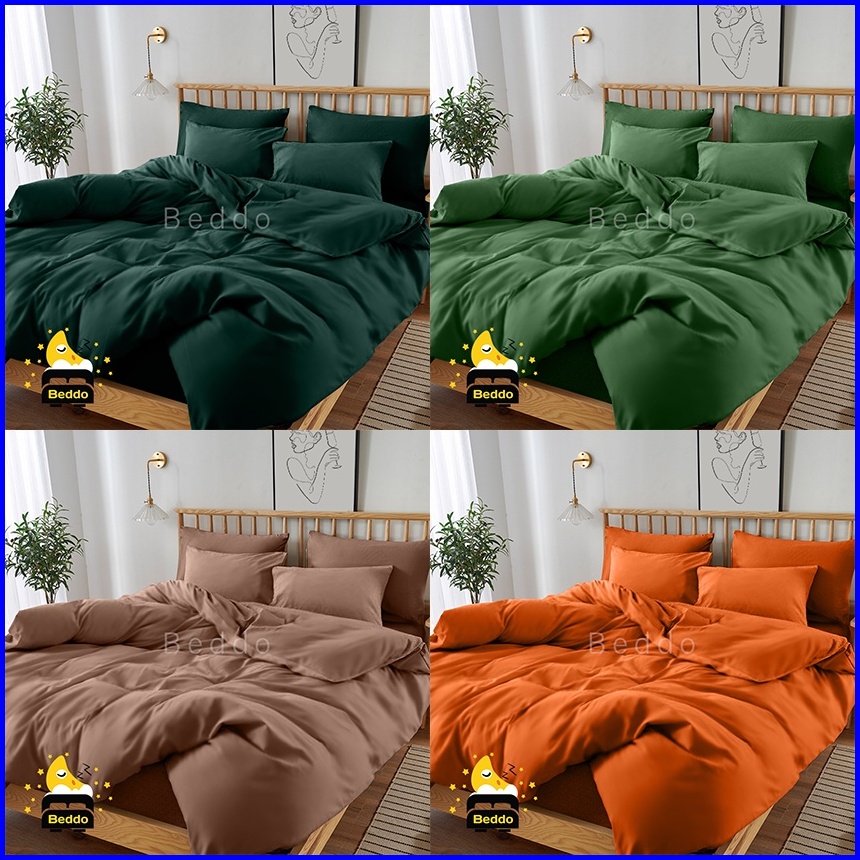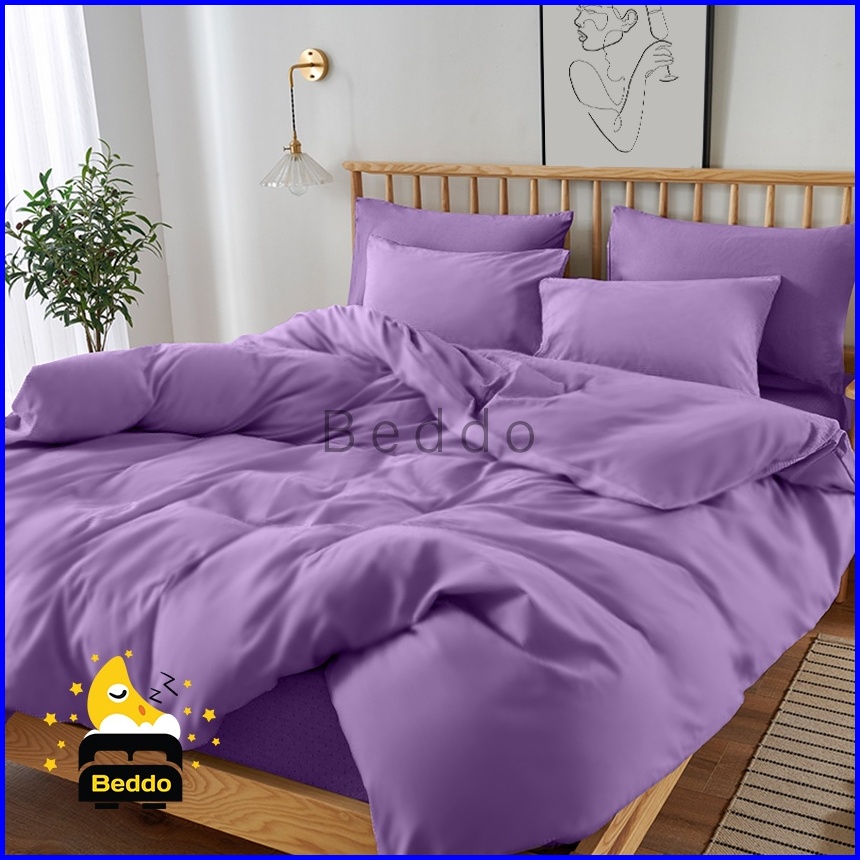 Beddo Sprei Set 160x200 Queen Polos Minimalis Microfiber Seprai Plain Grey Black White Navy Purple Mustrad Peach Silver
