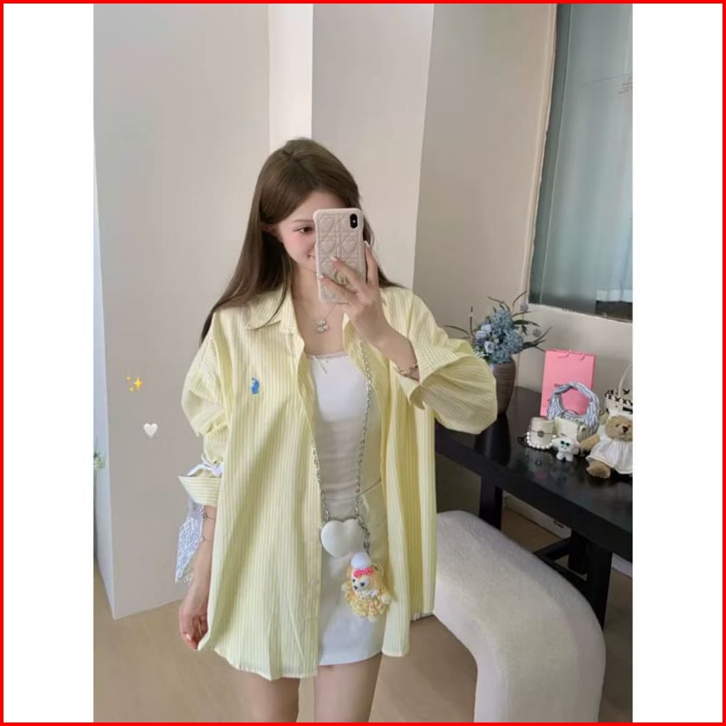 Atasan Kemeja Wanita Strip Elengan Panjang Kemeja Kerja Wanita Shirt Long Sleev