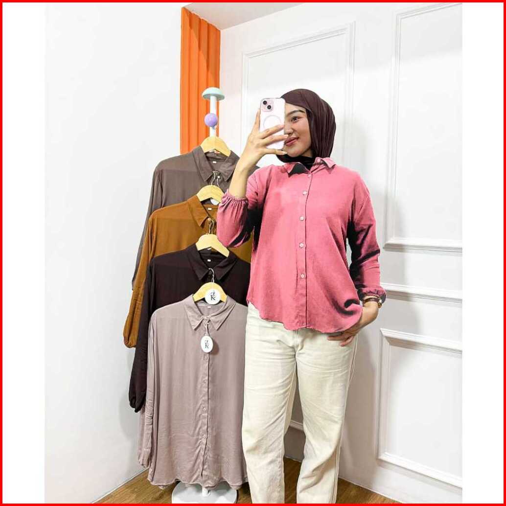 Zk-01 Kemeja Wanita Oversize Polos Rayon Twill Premium Basic Lengan Panjang Kemeja Kantoran