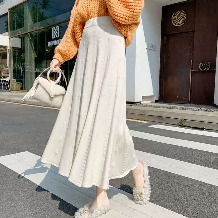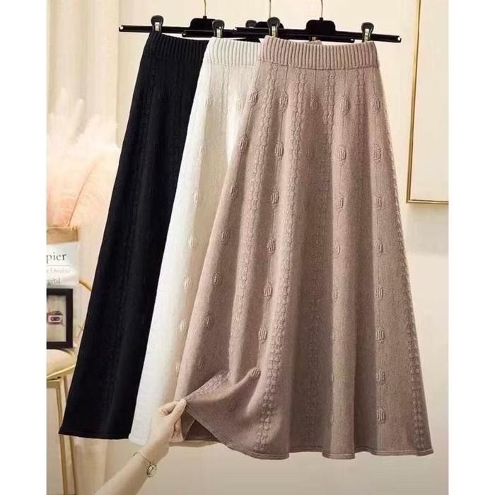 Markas Fashion99 Rok Rajut Panjang Vintage Skirt Wanita Polos Casual Bawahan Midi Maxi Cewek - 1031 Black